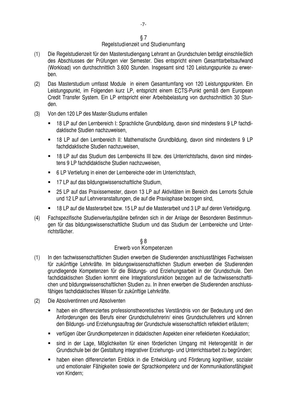 § 7 Regelstudienzeit und Studienumfang