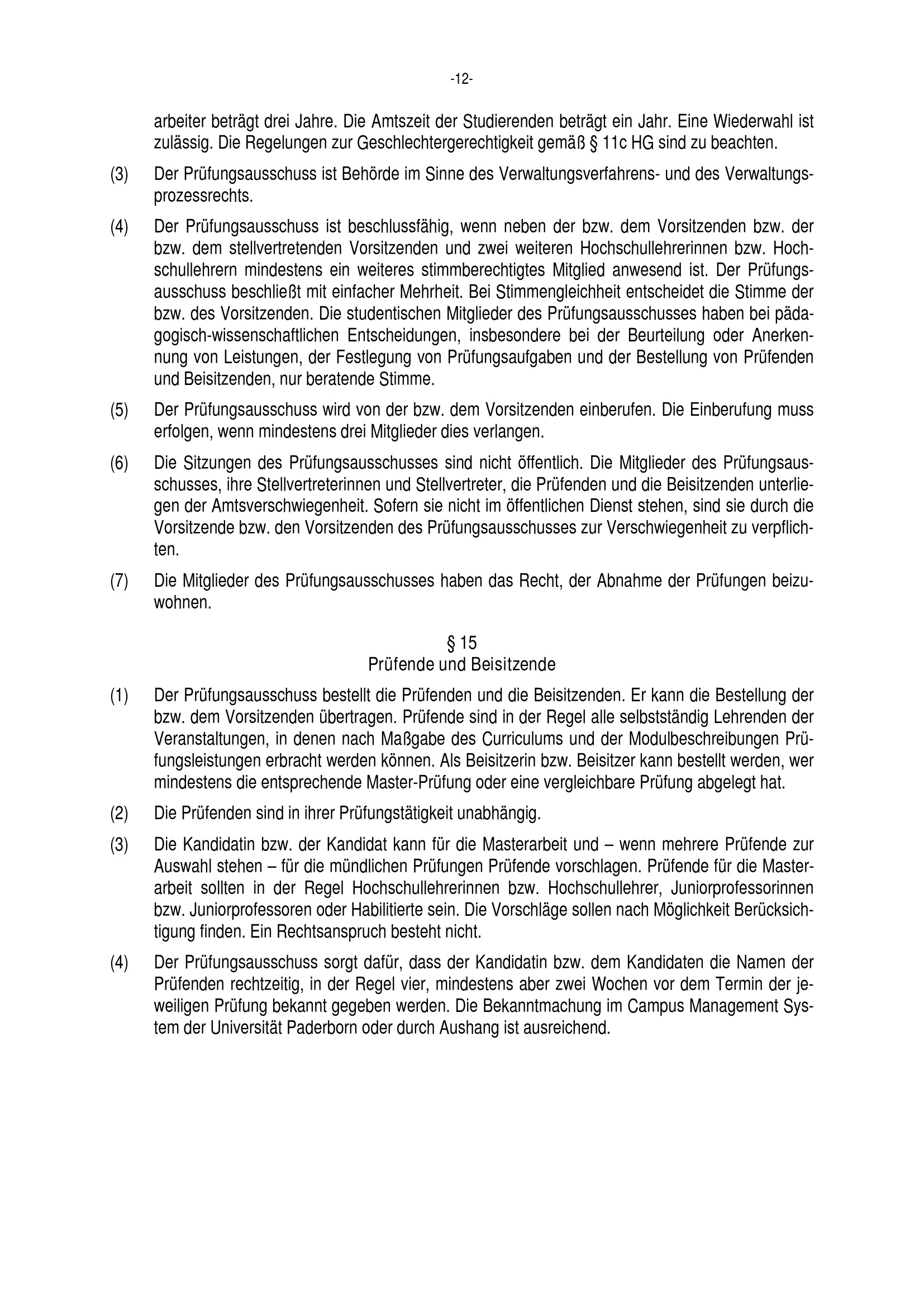 § 15 Prüfende und Beisitzende