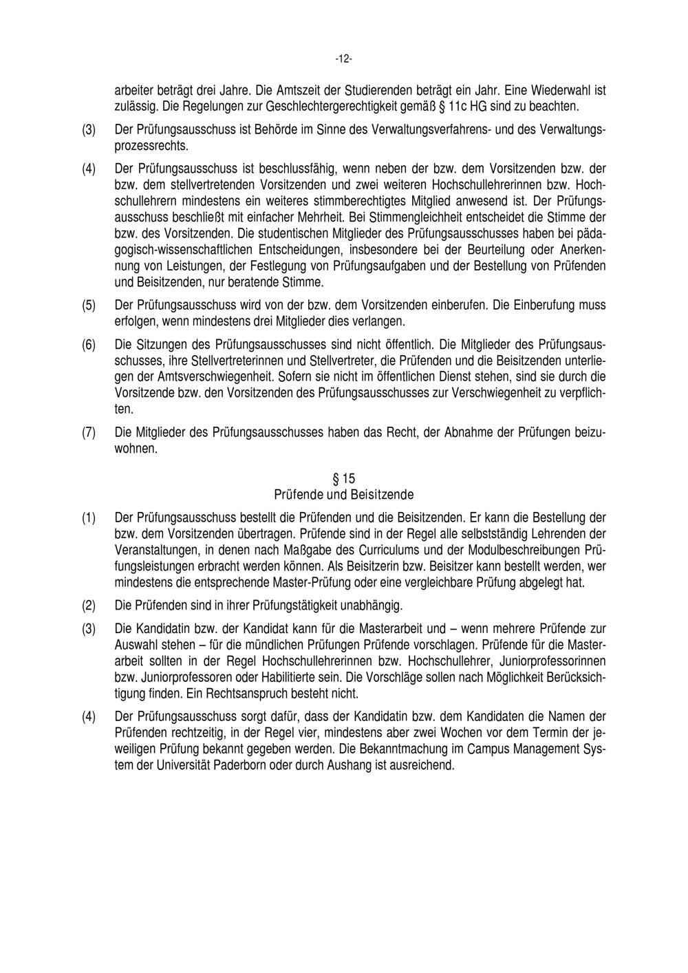 Allgemeine Bestimmungen der Prüfungsordnung für den Masterstudiengang Lehramt an Grundschulen an der Universität Paderborn : vom 22. Juli 2016