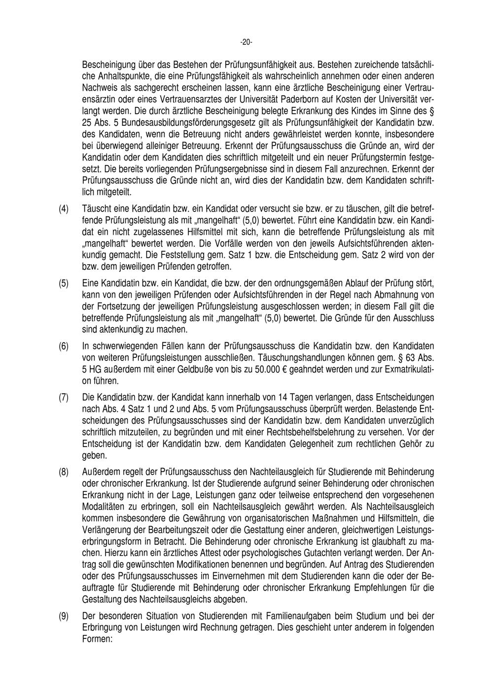 Allgemeine Bestimmungen der Prüfungsordnung für den Masterstudiengang Lehramt an Grundschulen an der Universität Paderborn : vom 22. Juli 2016