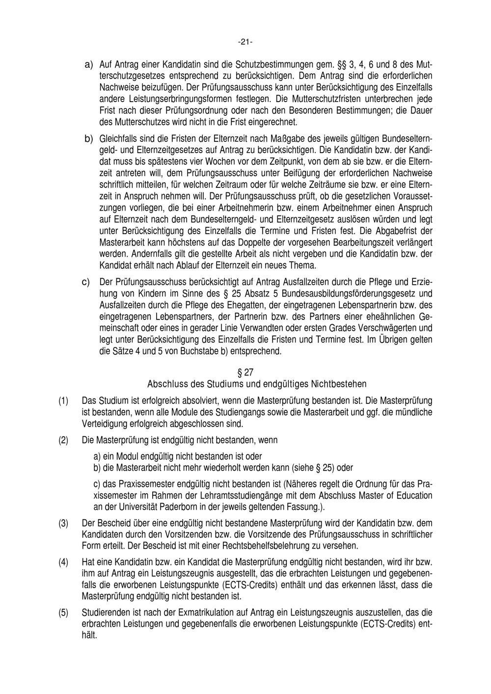 Allgemeine Bestimmungen der Prüfungsordnung für den Masterstudiengang Lehramt an Grundschulen an der Universität Paderborn : vom 22. Juli 2016