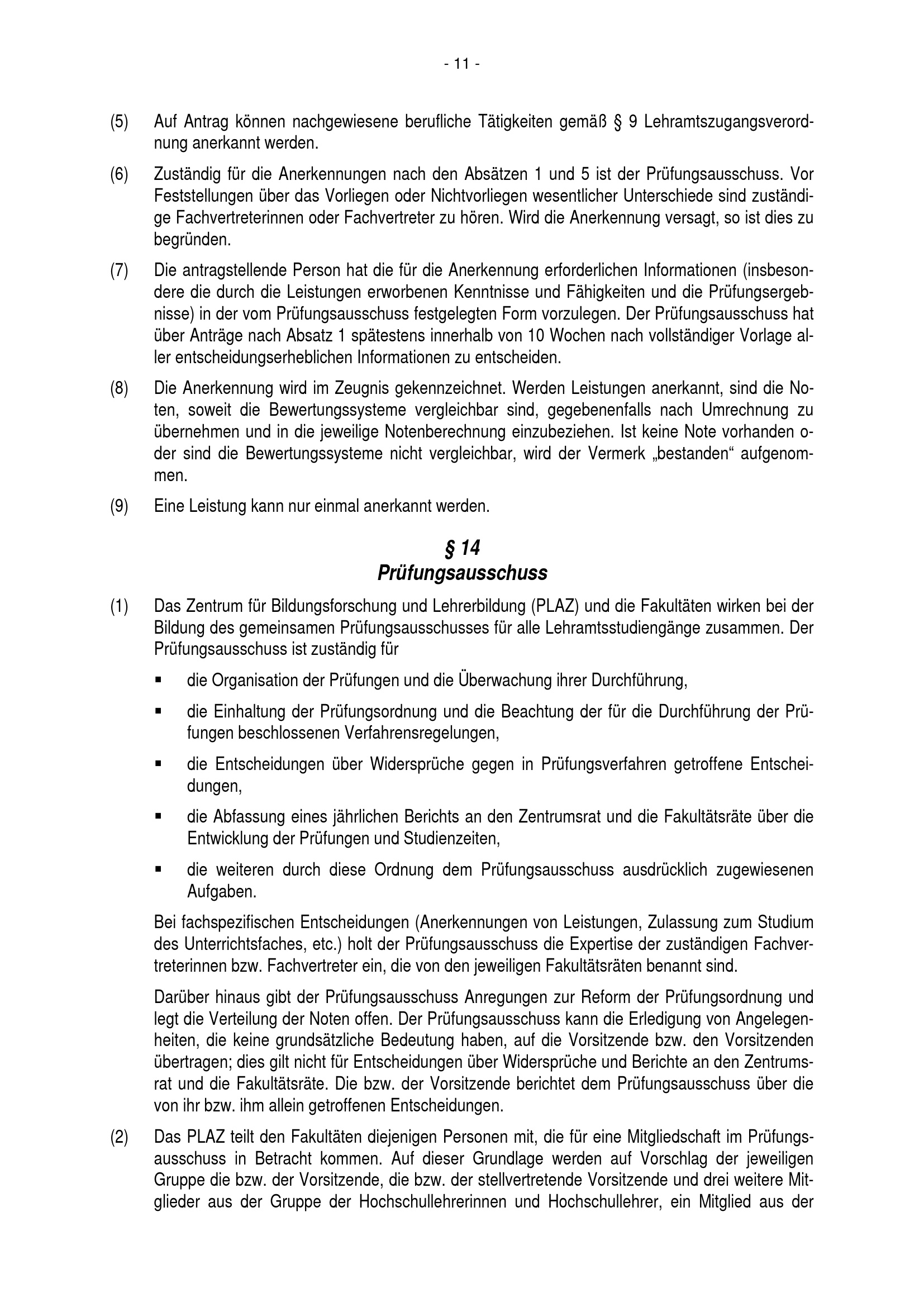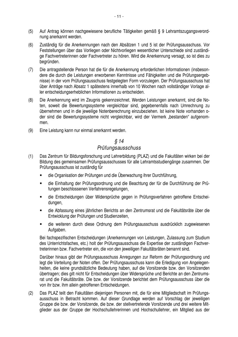 § 14 Prüfungsausschuss