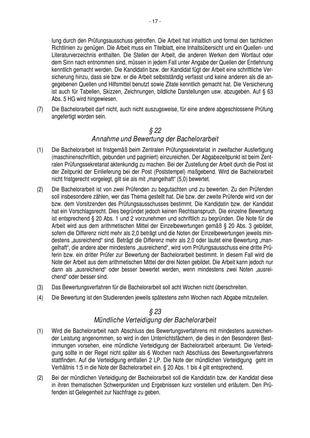 § 22 Annahme und Bewertung der Bachelorarbeit