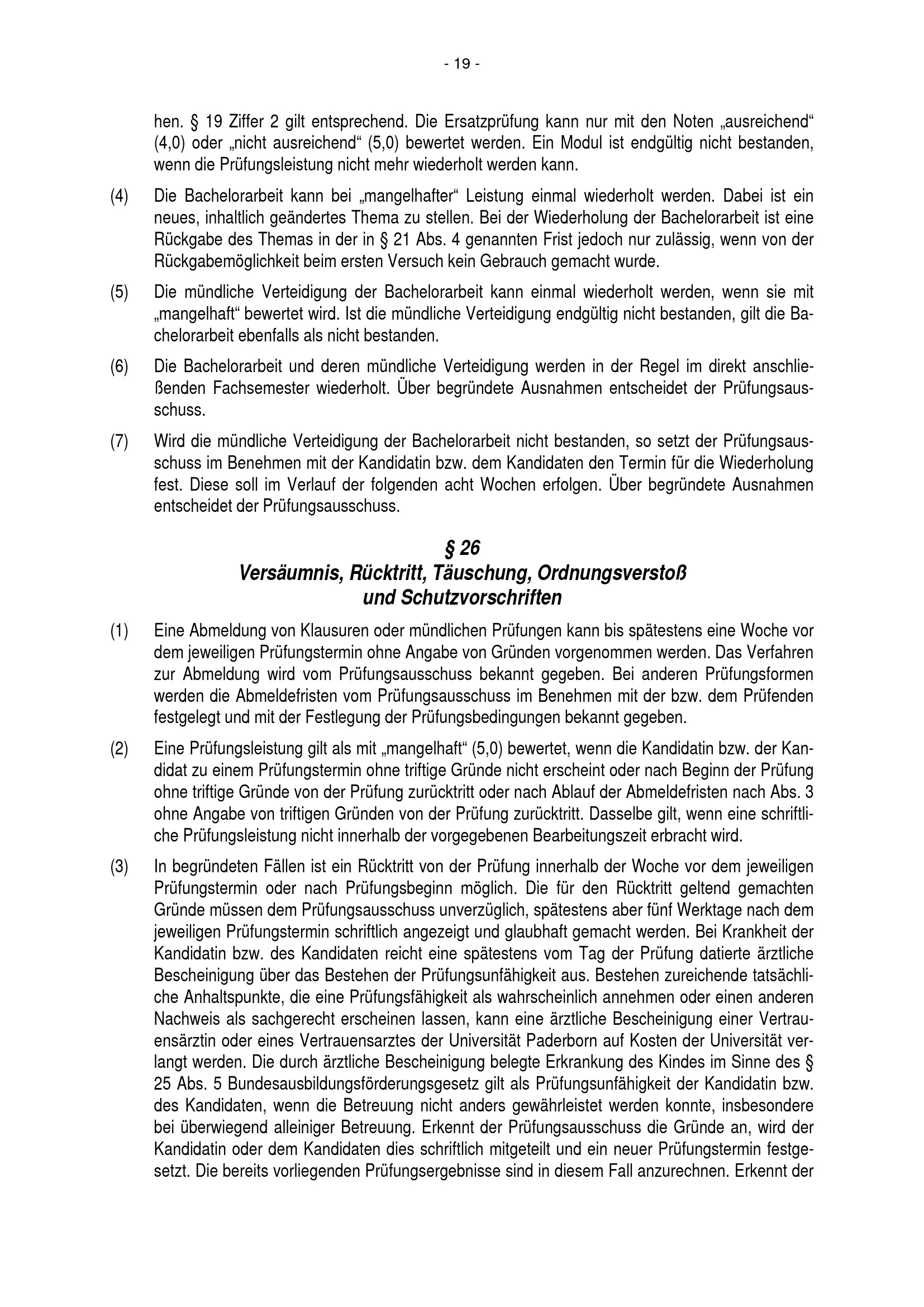 Allgemeine Bestimmungen der Prüfungsordnung für den Bachelorstudiengang Lehramt an Haupt-, Real-, Sekundar- und Gesamtschulen an der Universität Paderborn : vom 22. Juli 2016