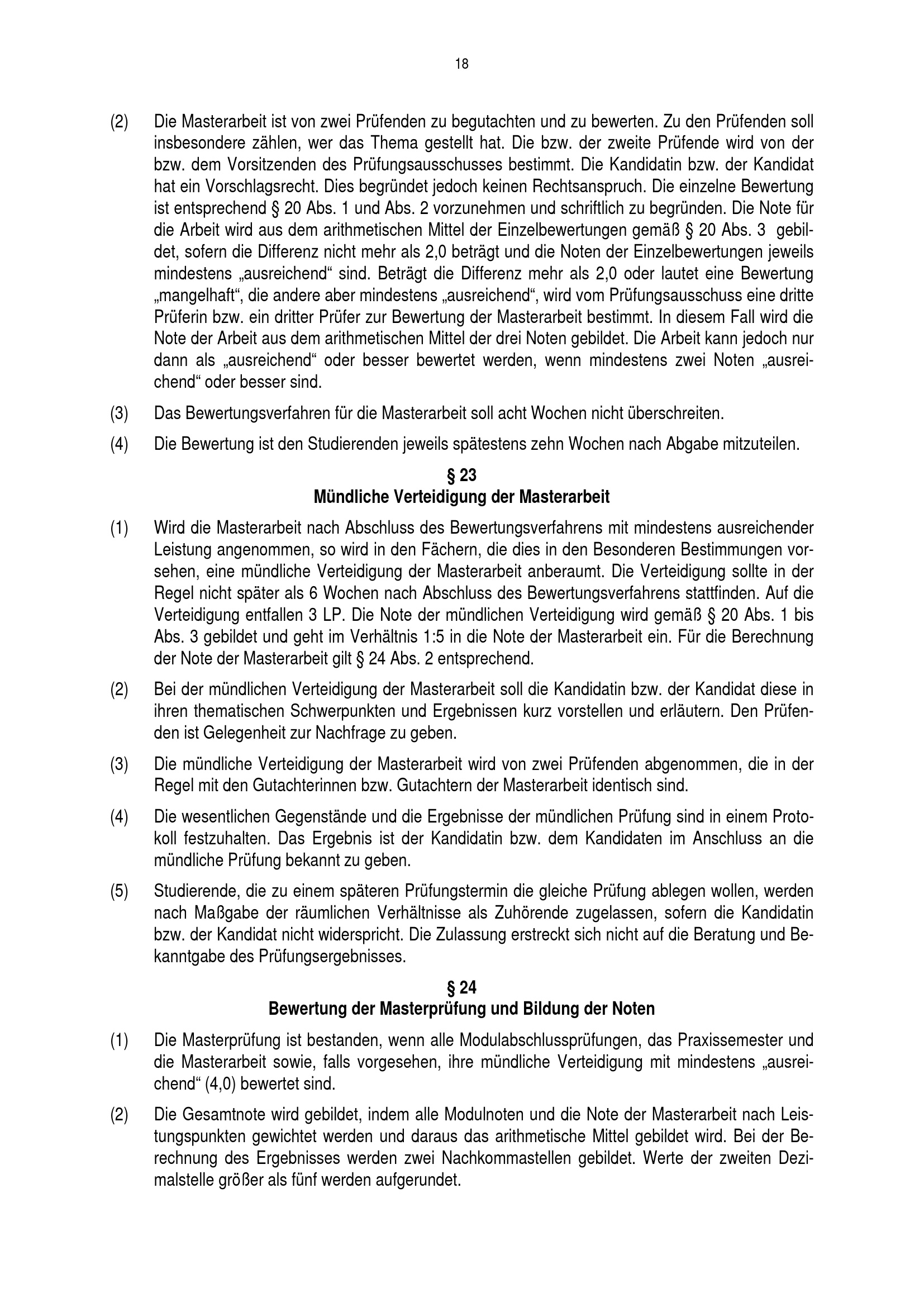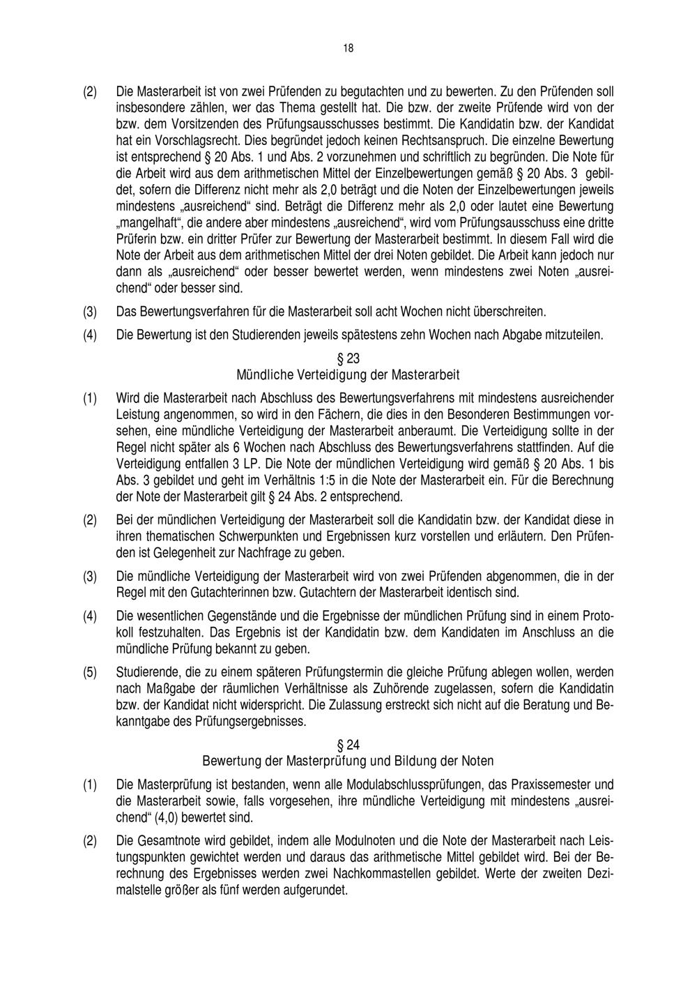 § 23 Mündliche Verteidigung der Masterarbeit