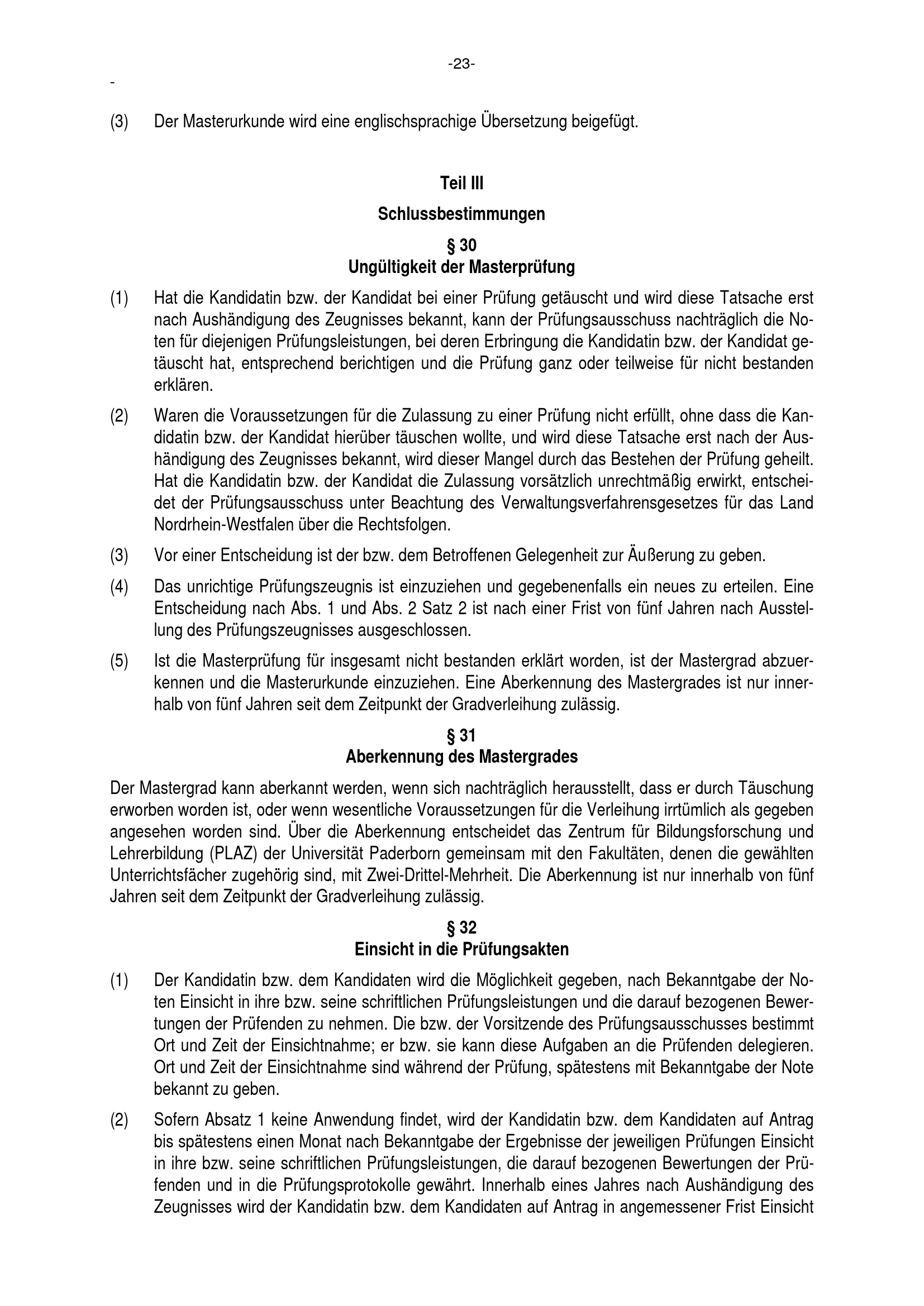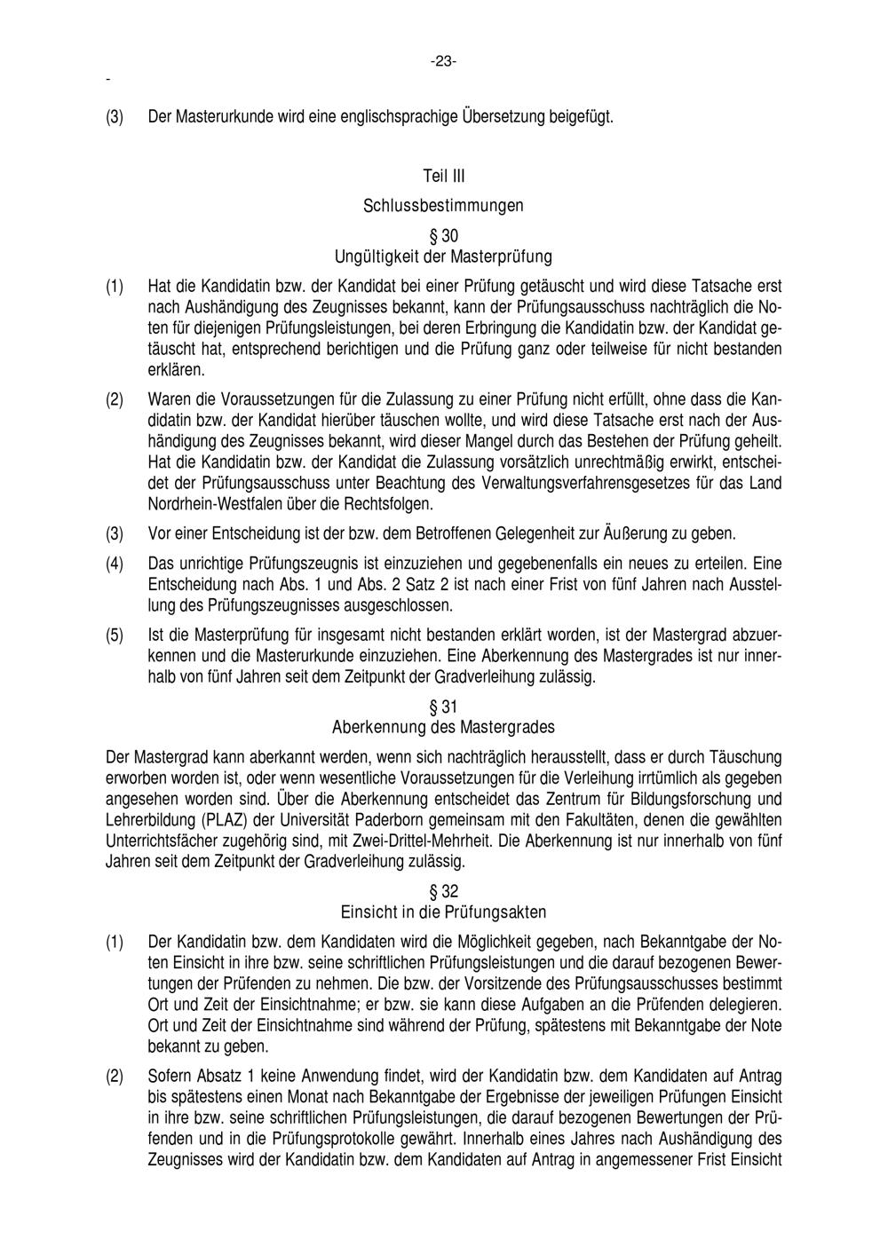 Allgemeine Bestimmungen der Prüfungsordnung für den Masterstudiengang Lehramt an Haupt-, Real-, Sekundar- und Gesamtschulen an der Universität Paderborn : vom 22. Juli 2016