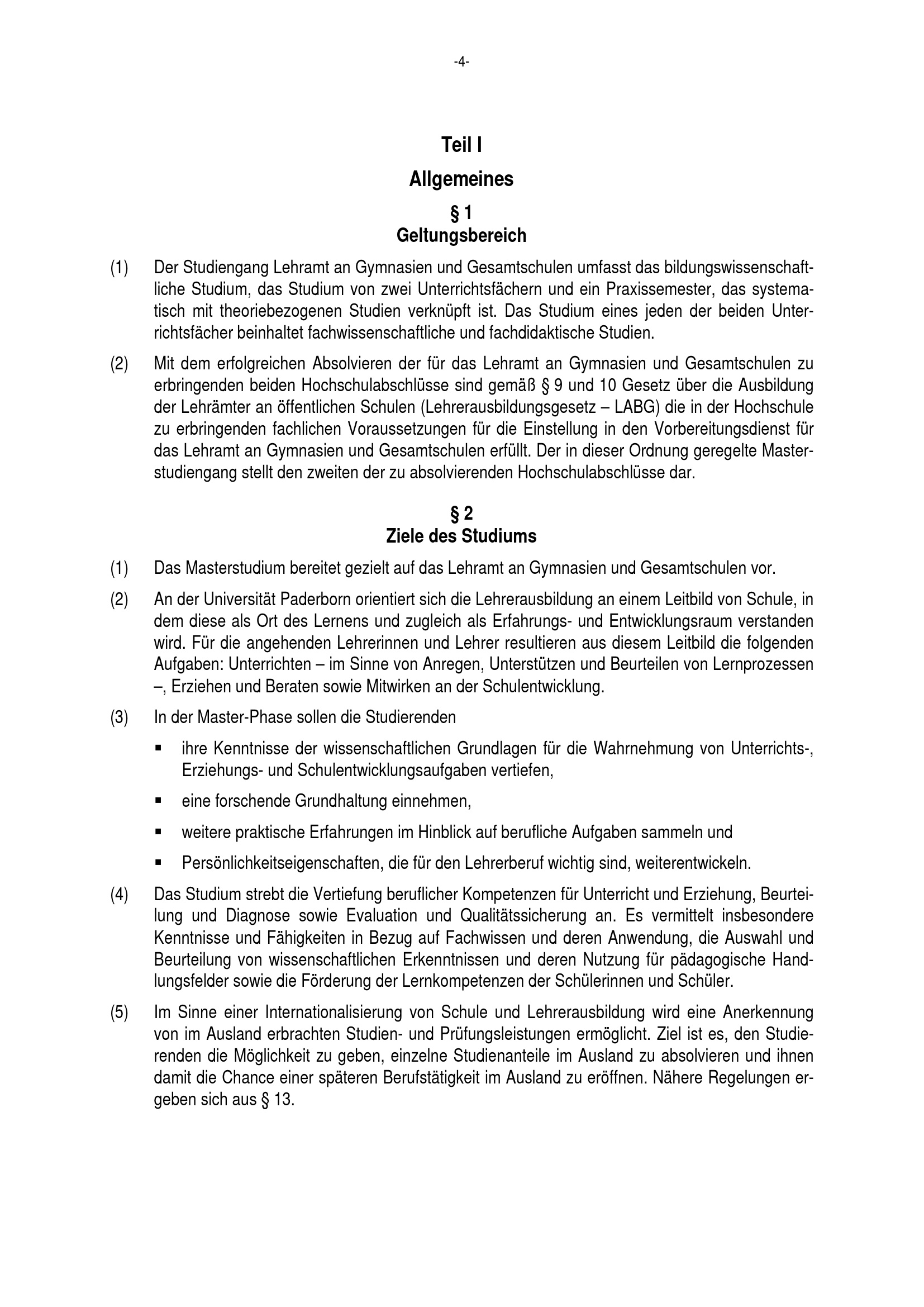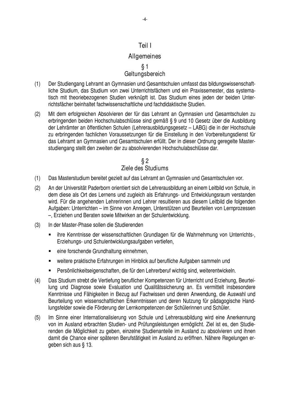 Allgemeine Bestimmungen der Prüfungsordnung für den Masterstudiengang Lehramt an Gymnasien und Gesamtschulen an der Universität Paderborn : vom 22. Juli 2016
