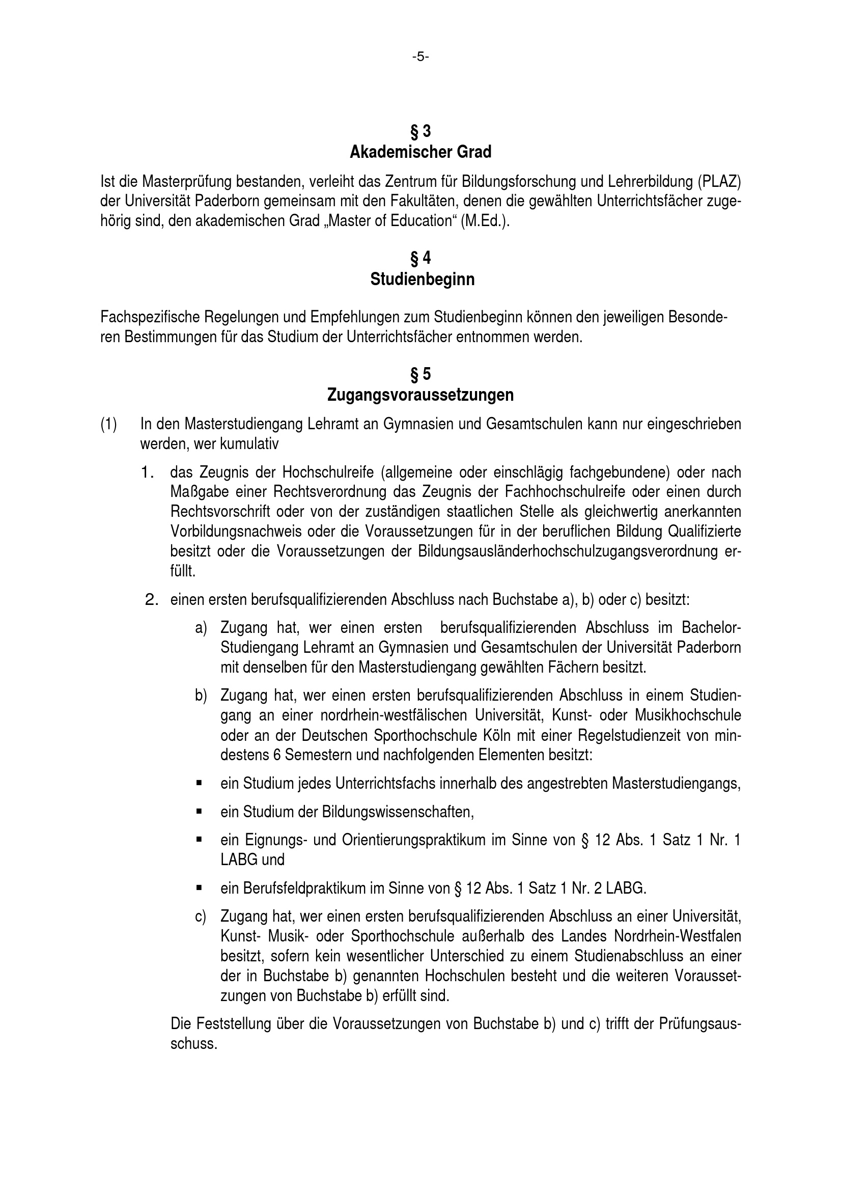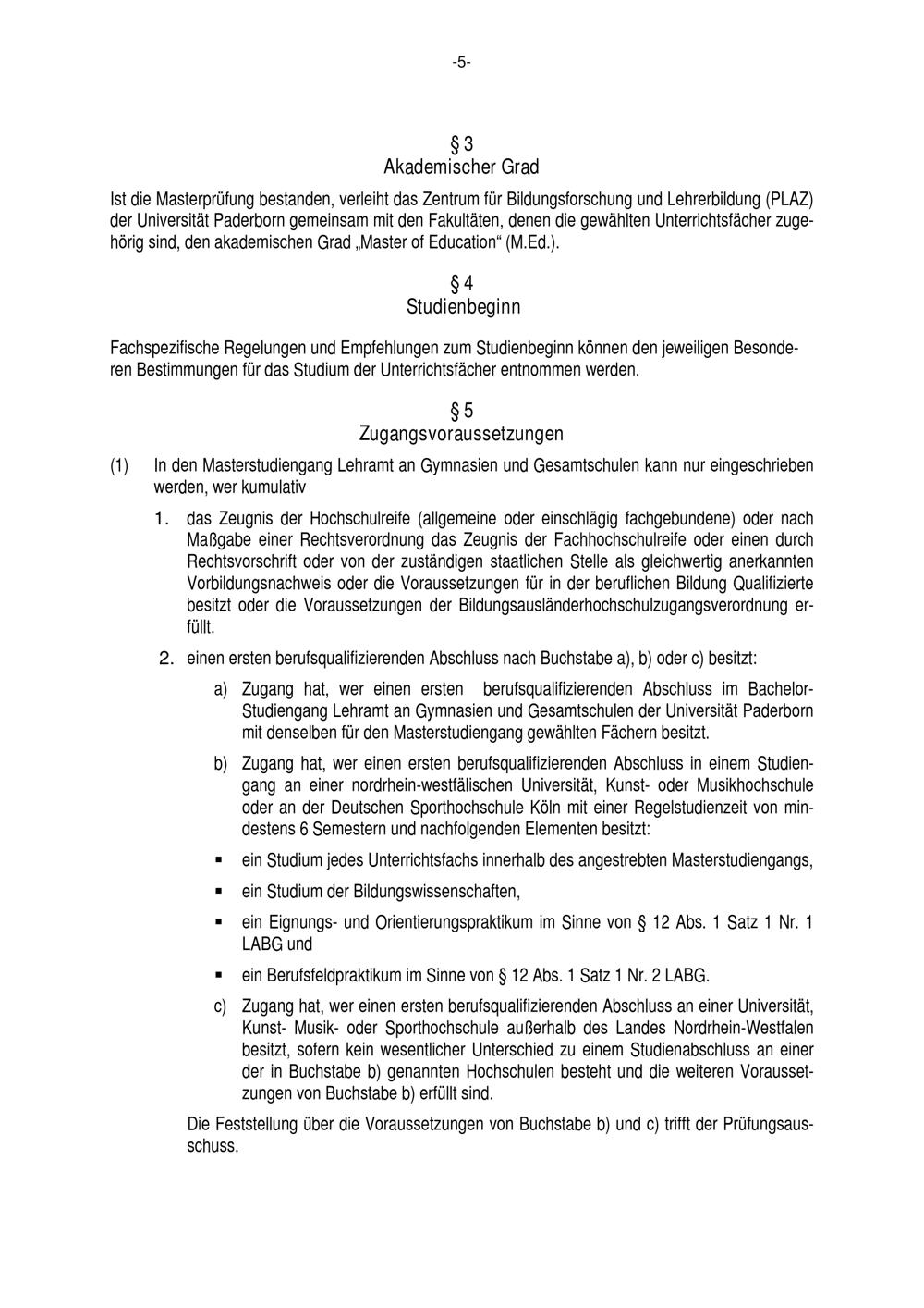 Allgemeine Bestimmungen der Prüfungsordnung für den Masterstudiengang Lehramt an Gymnasien und Gesamtschulen an der Universität Paderborn : vom 22. Juli 2016