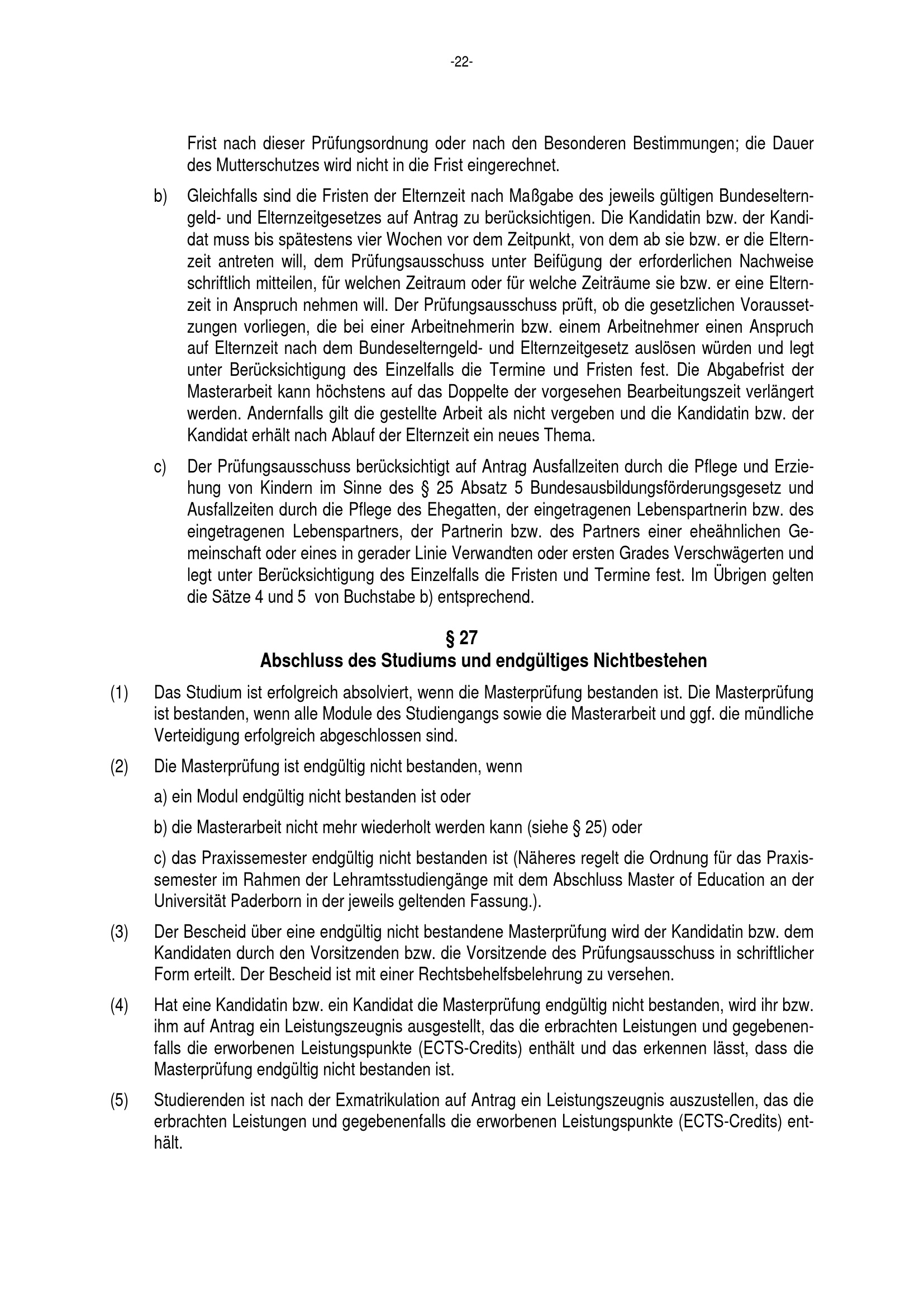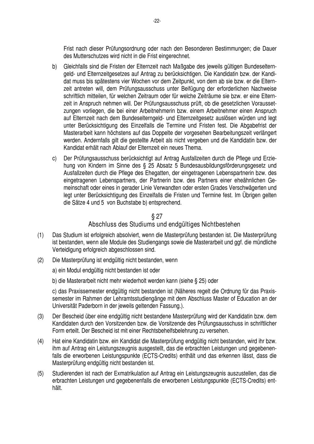 Allgemeine Bestimmungen der Prüfungsordnung für den Masterstudiengang Lehramt an Gymnasien und Gesamtschulen an der Universität Paderborn : vom 22. Juli 2016