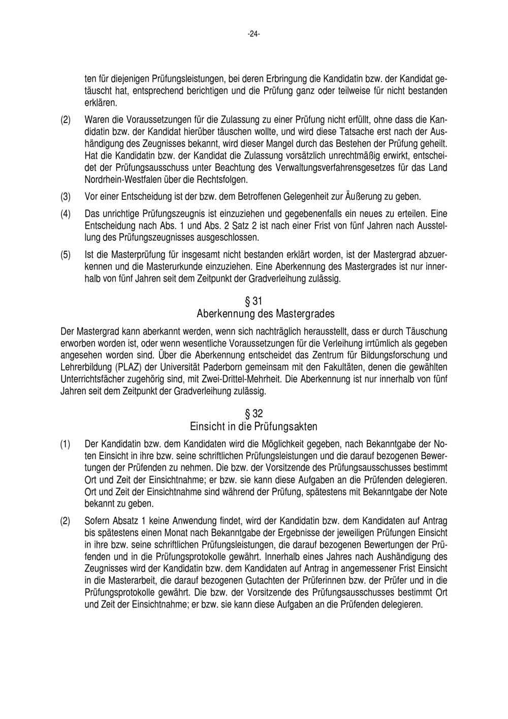 Allgemeine Bestimmungen der Prüfungsordnung für den Masterstudiengang Lehramt an Gymnasien und Gesamtschulen an der Universität Paderborn : vom 22. Juli 2016
