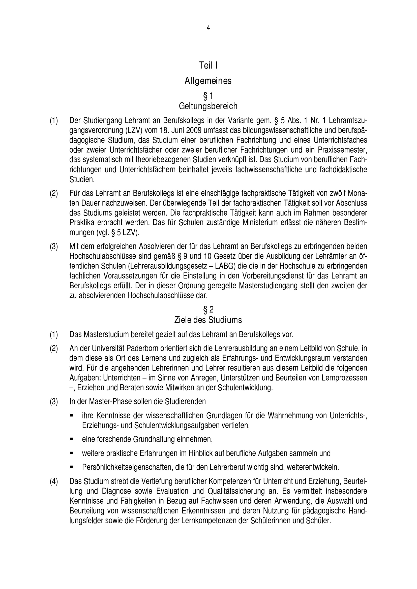 Allgemeine Bestimmungen der Prüfungsordnung für den Masterstudiengang Lehramt an Berufskollegs mit einer beruflichen Fachrichtung und einem Unterrichtsfach mit zwei beruflichen Fachrichtungen oder mit zwei Unterrichtsfächern an der Universität Paderborn : vom 22. Juli 2016