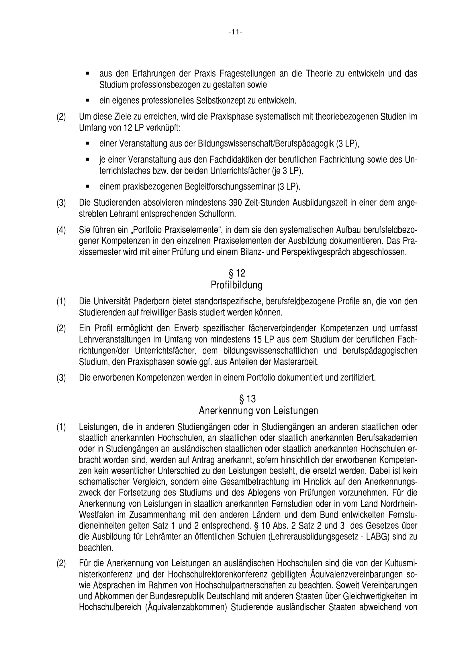 Allgemeine Bestimmungen der Prüfungsordnung für den Masterstudiengang Lehramt an Berufskollegs mit einer beruflichen Fachrichtung und einem Unterrichtsfach mit zwei beruflichen Fachrichtungen oder mit zwei Unterrichtsfächern an der Universität Paderborn : vom 22. Juli 2016