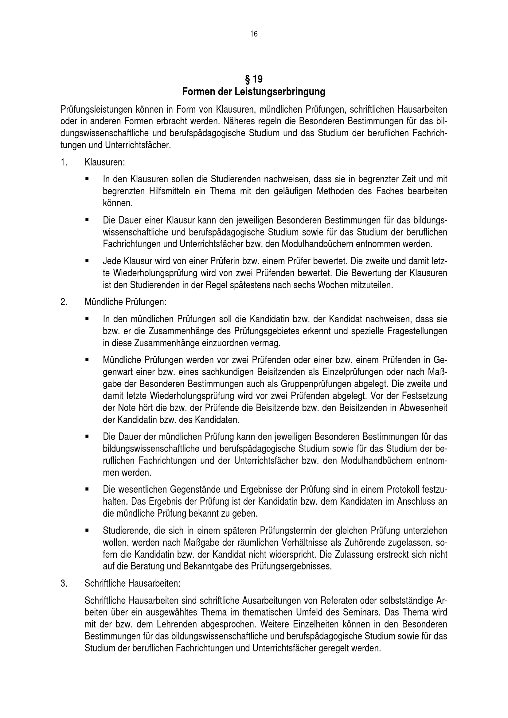 Allgemeine Bestimmungen der Prüfungsordnung für den Masterstudiengang Lehramt an Berufskollegs mit einer beruflichen Fachrichtung und einem Unterrichtsfach mit zwei beruflichen Fachrichtungen oder mit zwei Unterrichtsfächern an der Universität Paderborn : vom 22. Juli 2016