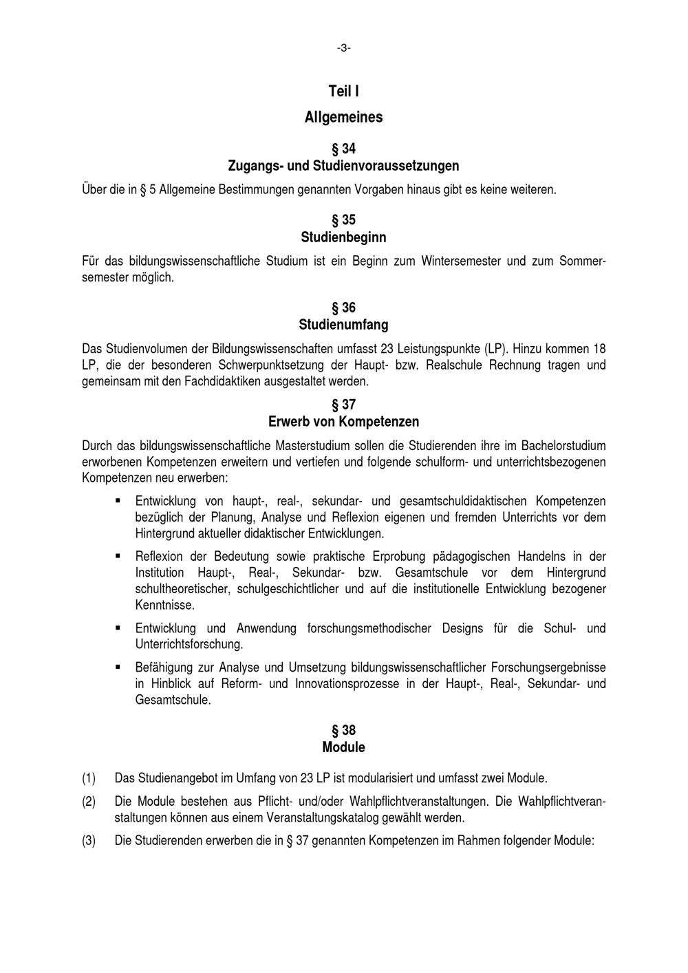 Besondere Bestimmungen der Prüfungsordnung für den Masterstudiengang Lehramt an Haupt-, Real-, Sekundar- und Gesamtschulen für das bildungswissenschaftliche Studium an der Universität Paderborn : vom 22. Juli 2016