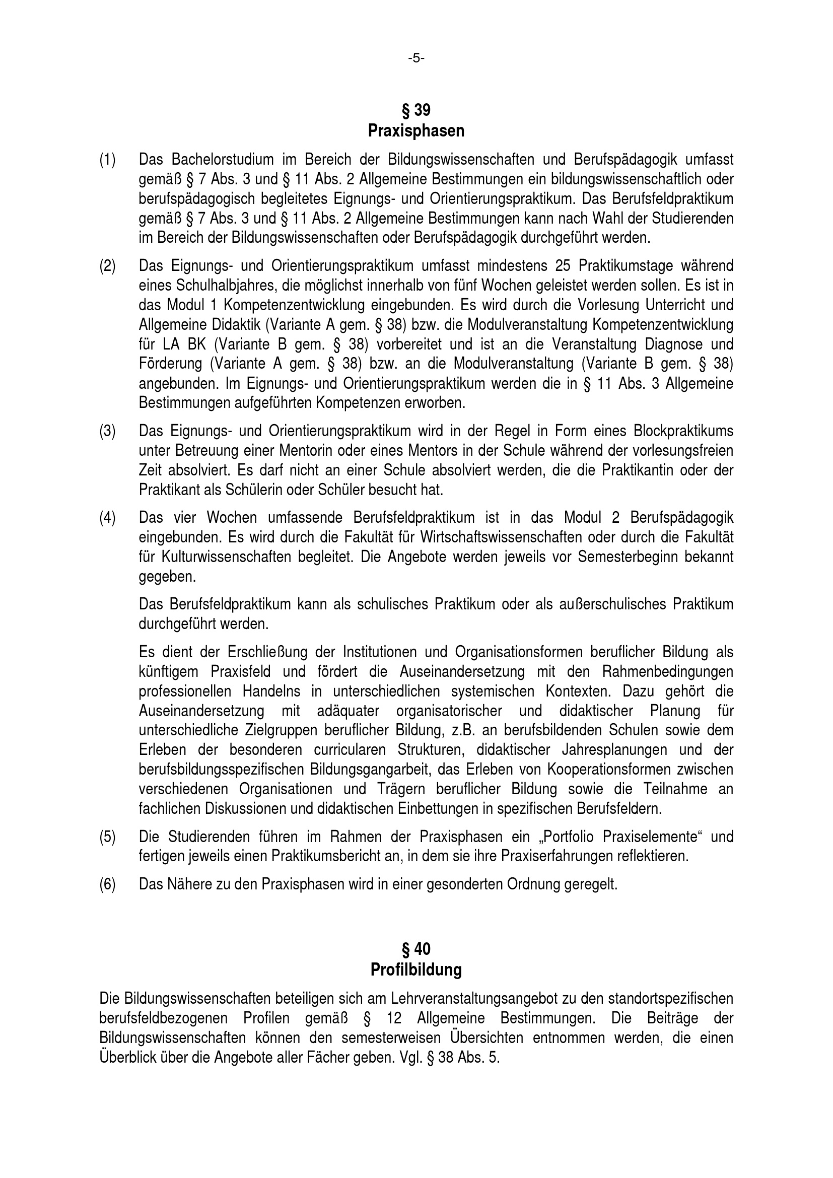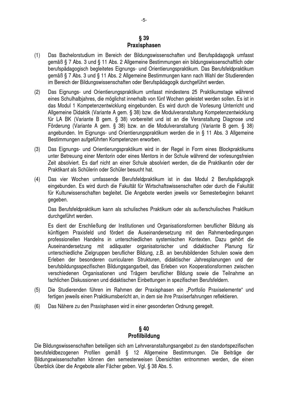 Besondere Bestimmungen der Prüfungsordnung für den Bachelorstudiengang Lehramt an Berufskollegs für das bildungswissenschaftliche und berufspädagogische Studium an der Universität Paderborn : vom 22. Juli 2016