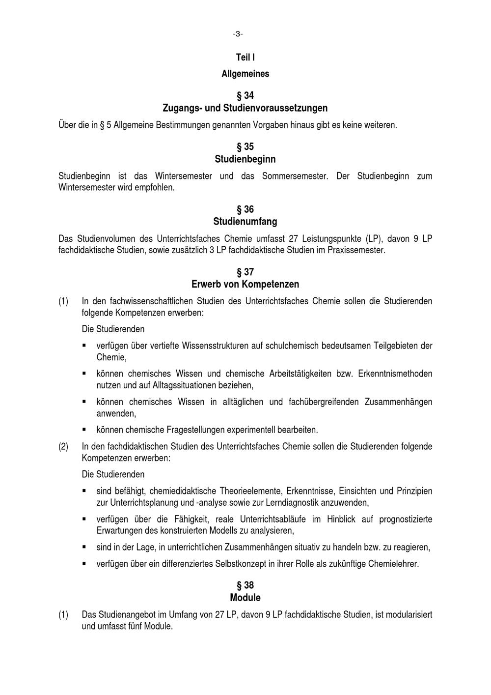 Besondere Bestimmungen der Prüfungsordnung für den Masterstudiengang Lehramt an Gymnasien und Gesamtschulen mit dem Unterrichtsfach Chemie an der Universität Paderborn : vom 22. Juli 2016
