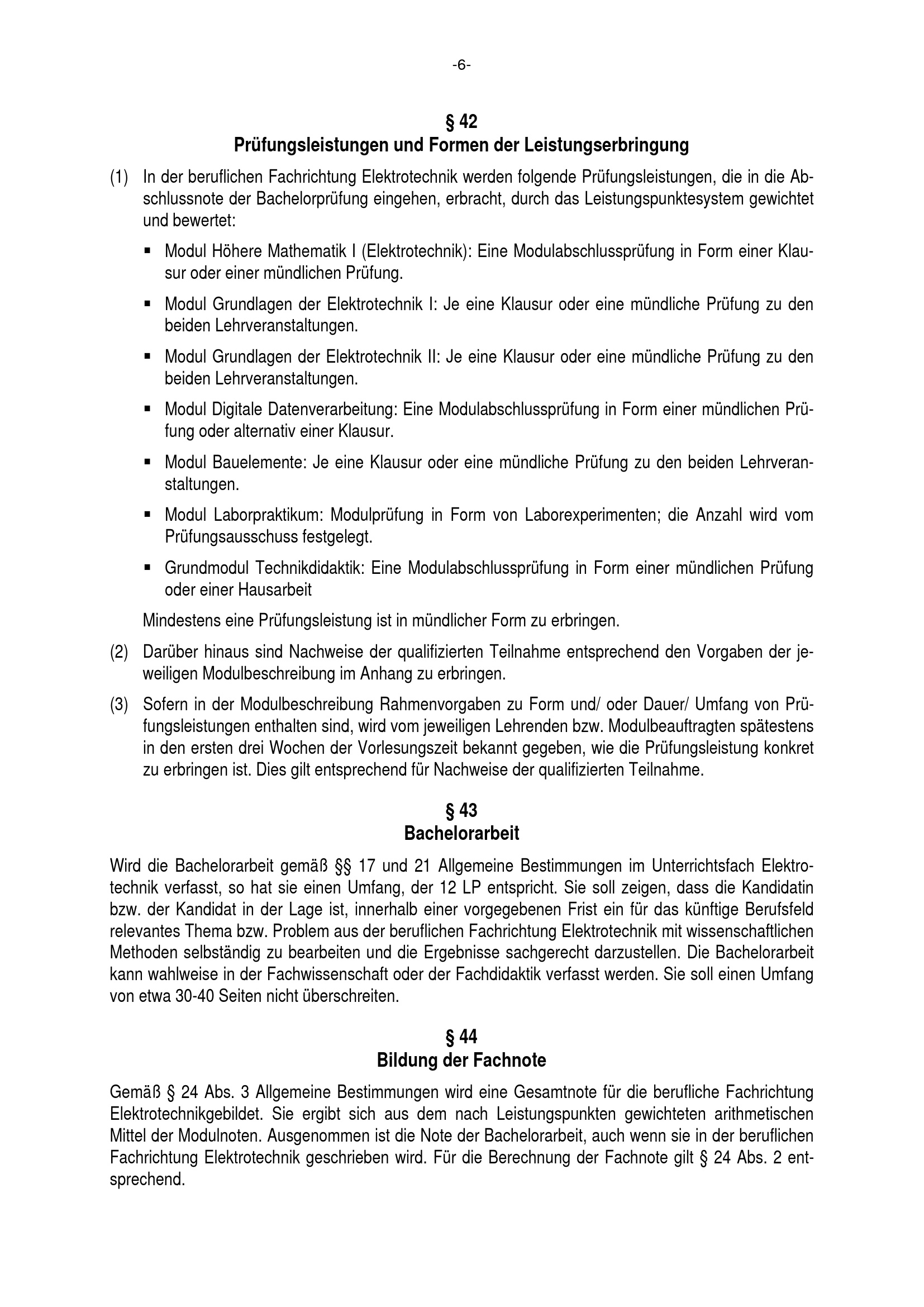 Besondere Bestimmungen der Prüfungsordnung für den Bachelorstudiengang Lehramt an Berufskollegs mit der beruflichen Fachrichtung Elektrotechnik an der Universität Paderborn : vom 22. Juli 2016