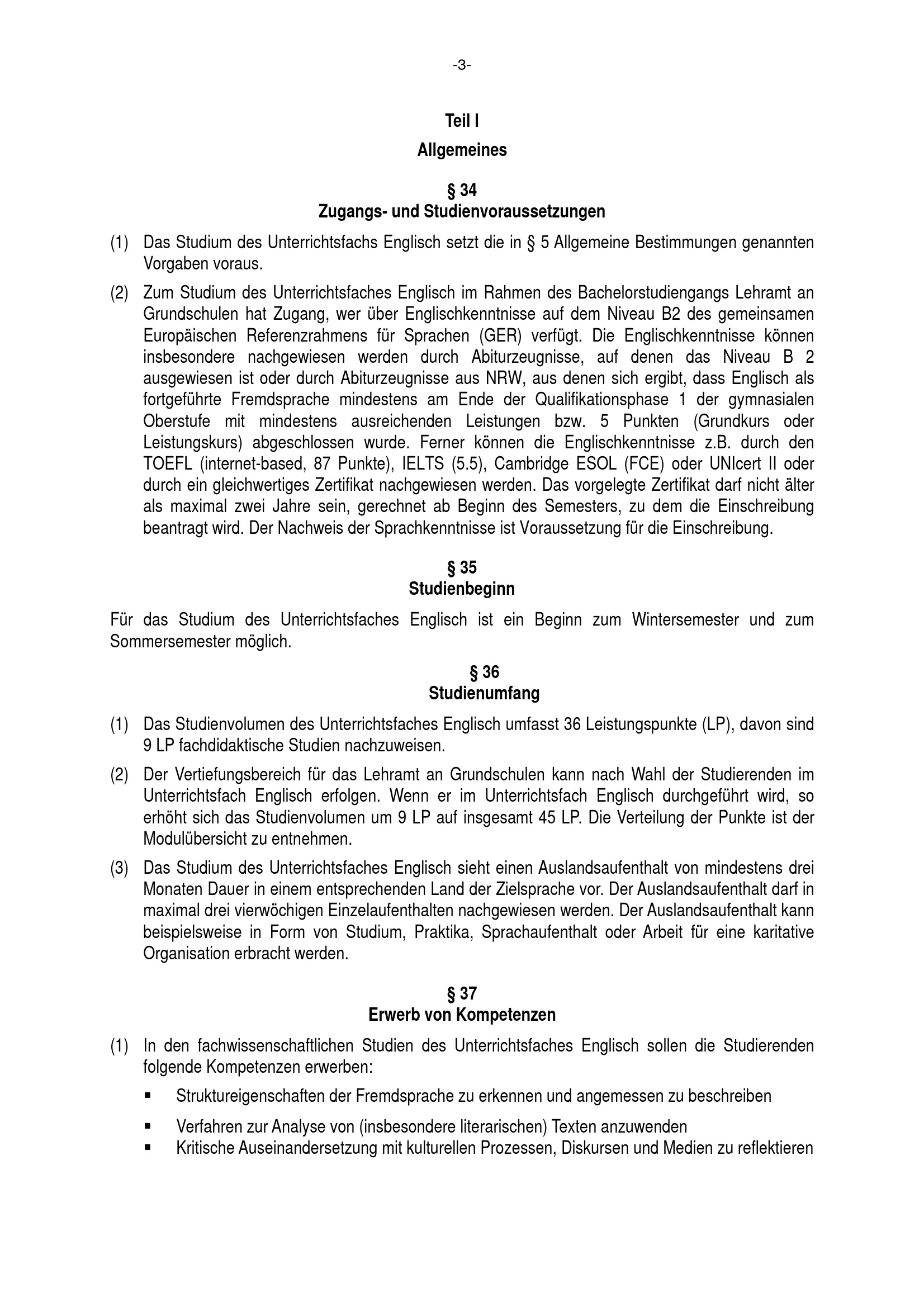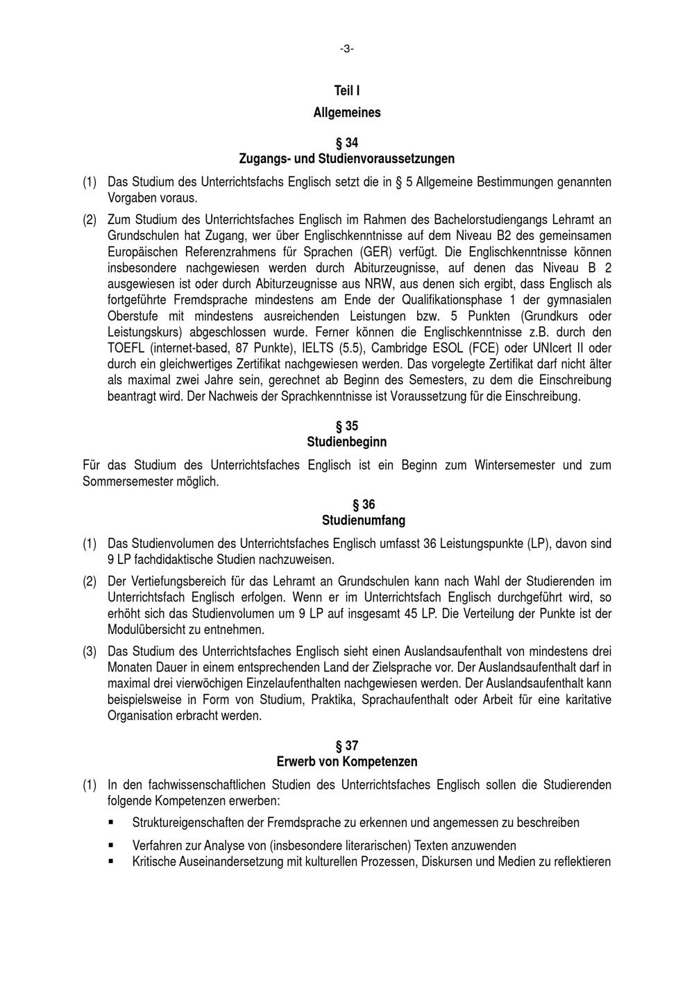 Besondere Bestimmungen der Prüfungsordnung für den Bachelorstudiengang Lehramt an Grundschulen mit dem Unterrichtsfach Englisch an der Universität Paderborn : vom 22. Juli 2016