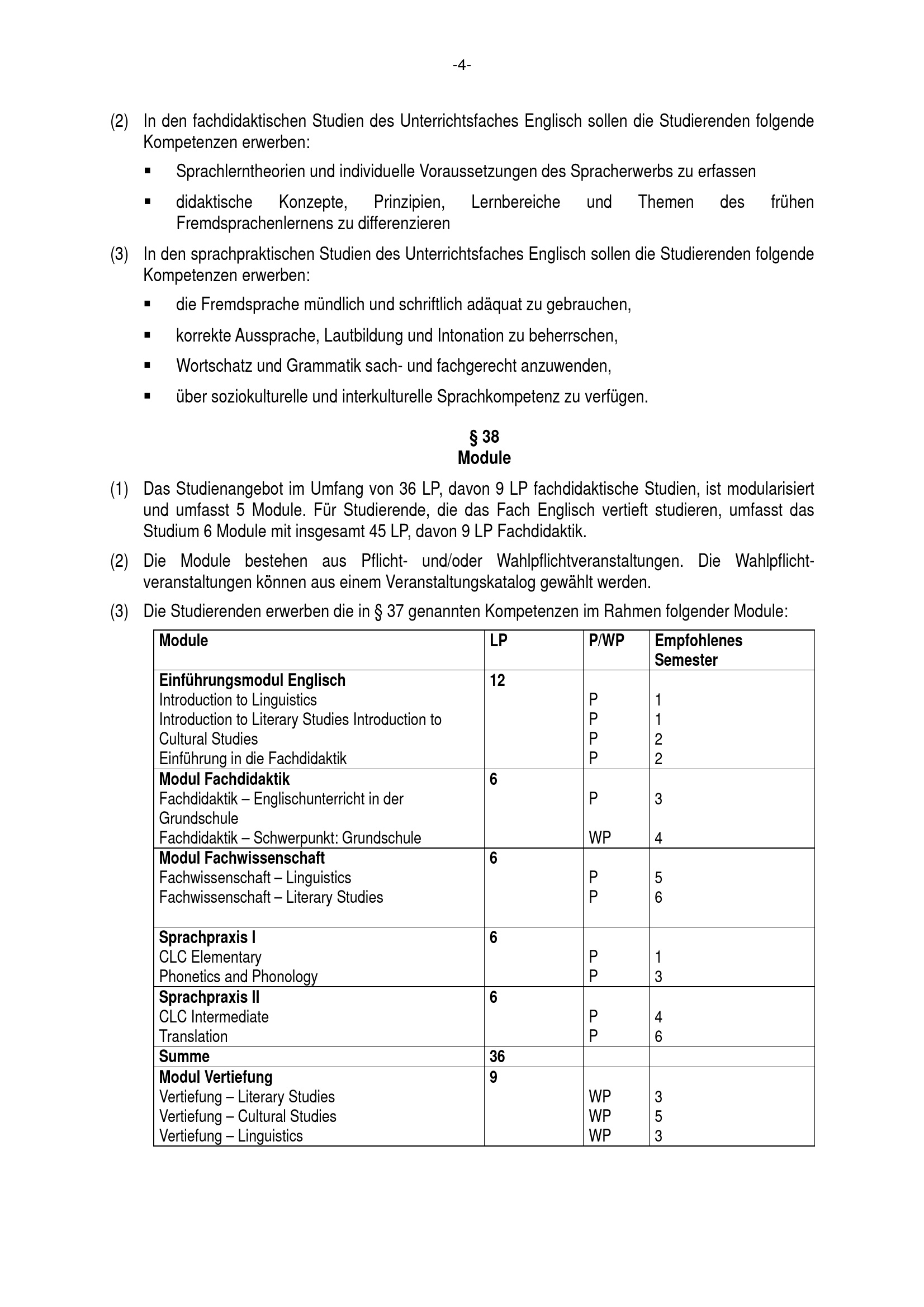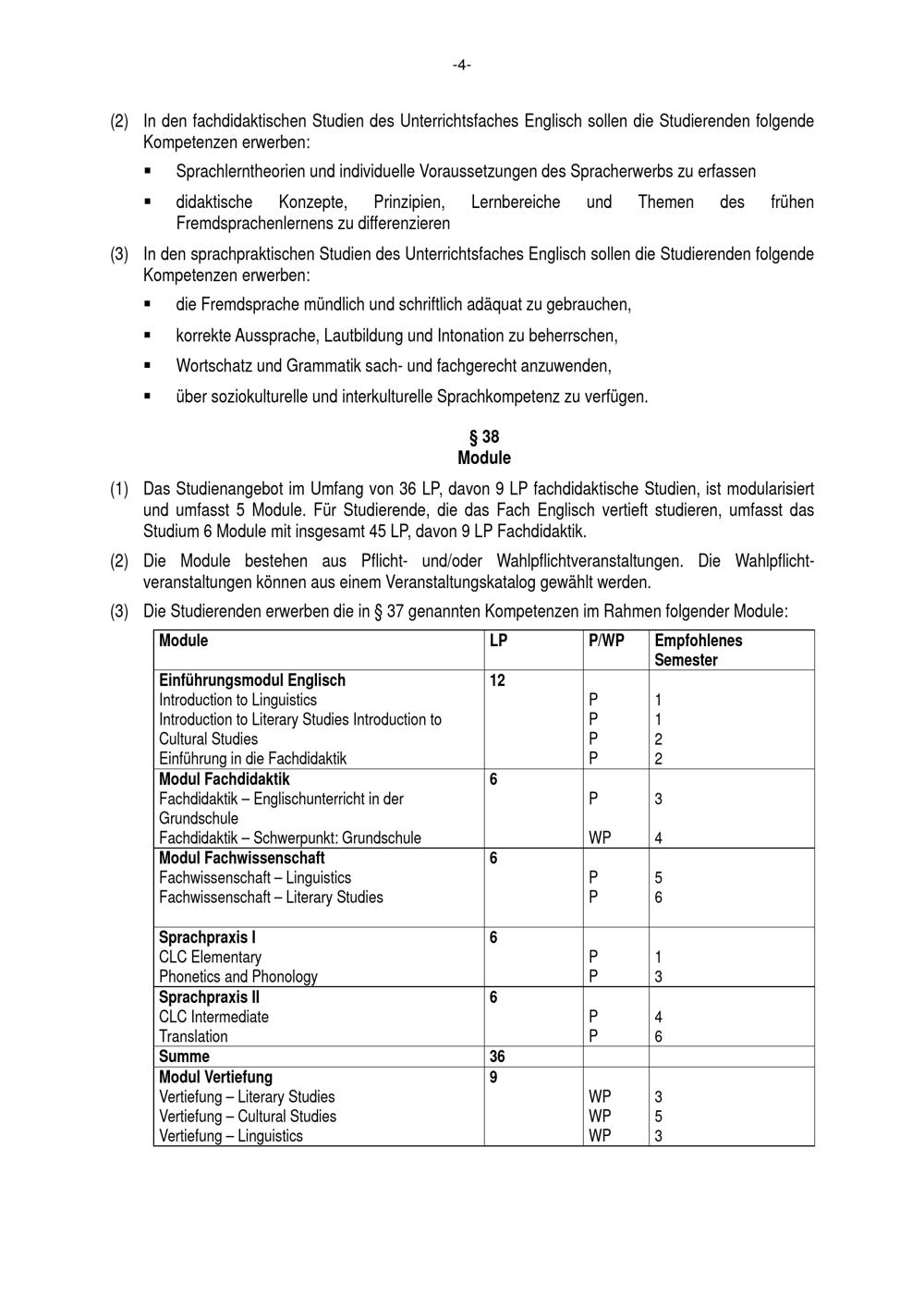 § 36 Studienumfang