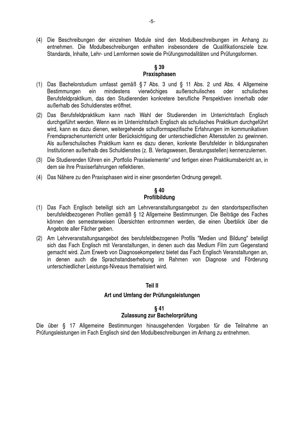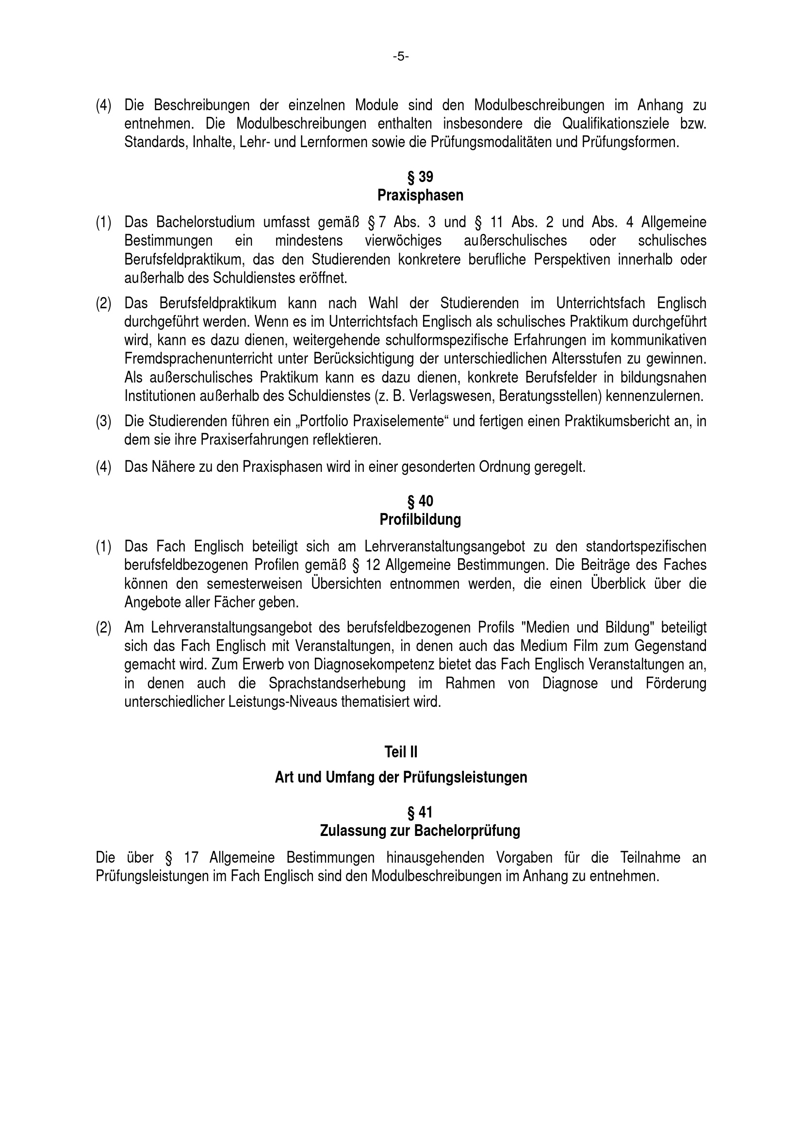 § 41 Zulassung zur Bachelorprüfung