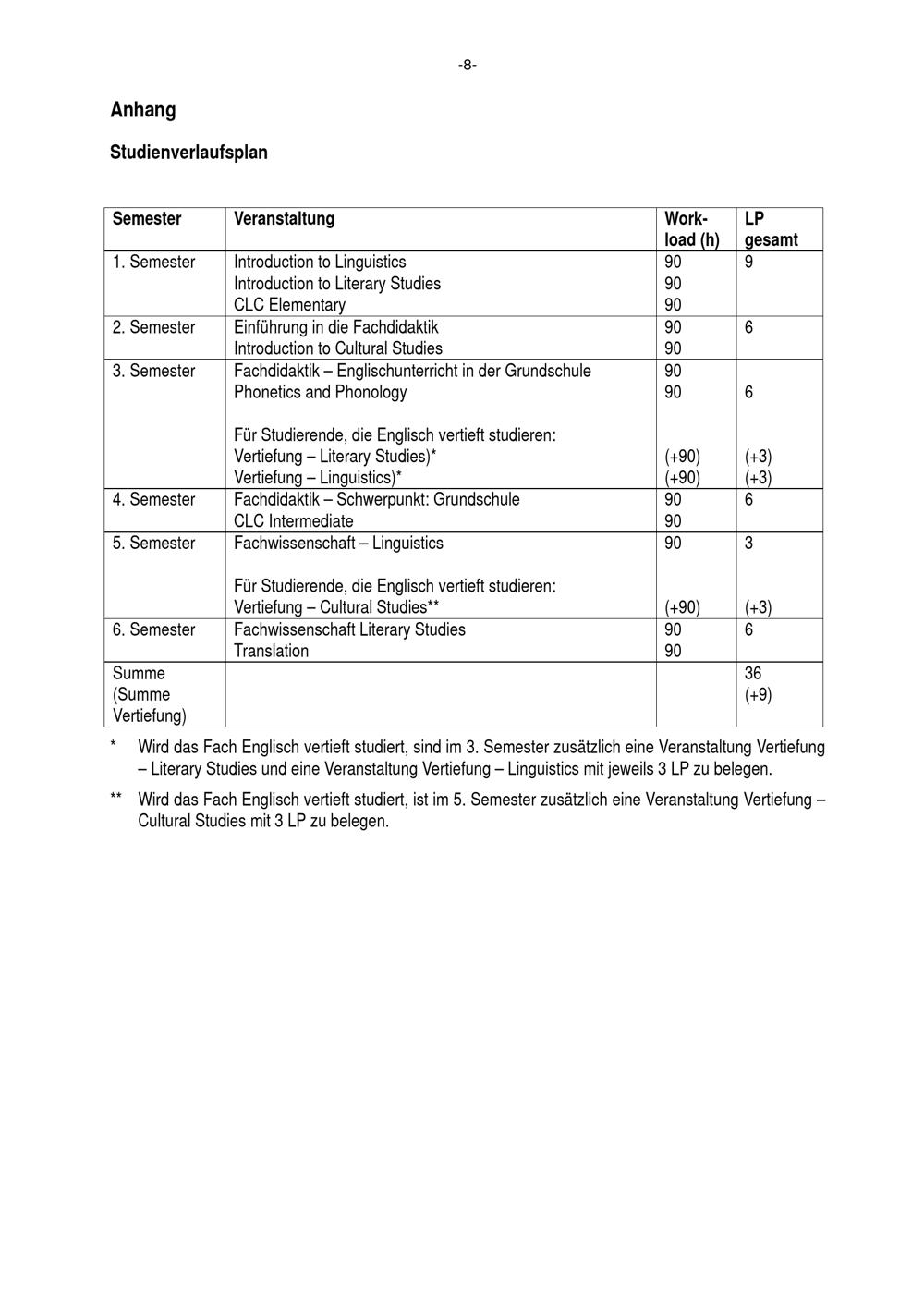 § 36 Studienumfang