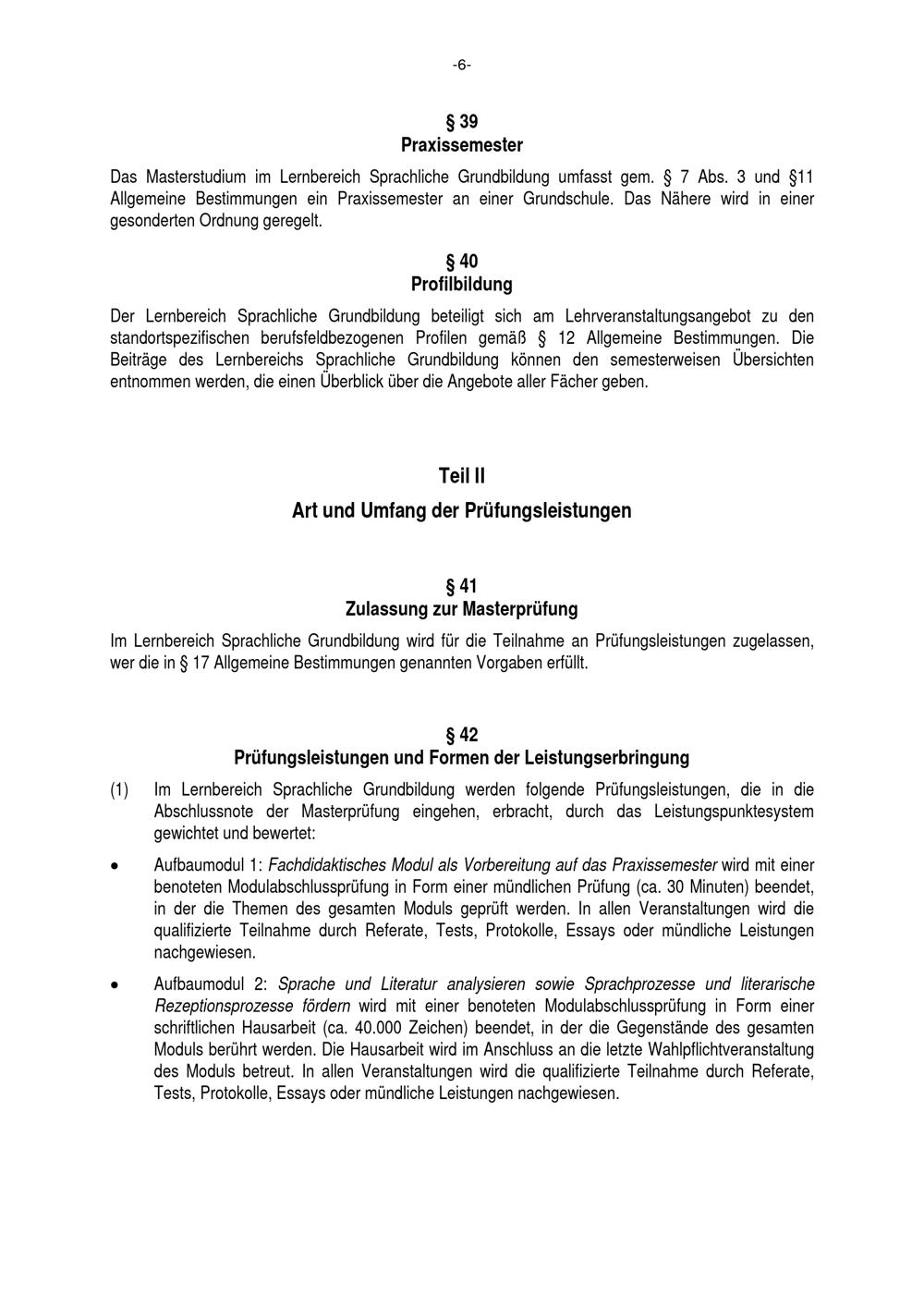 Besondere Bestimmungen der Prüfungsordnung für den Masterstudiengang Lehramt an Grundschulen[...]
