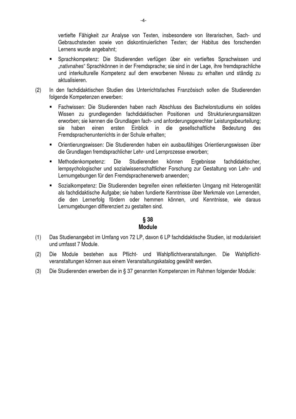(2) In den fachdidaktischen Studien des Unterrichtsfaches Französisch sollen die[...]