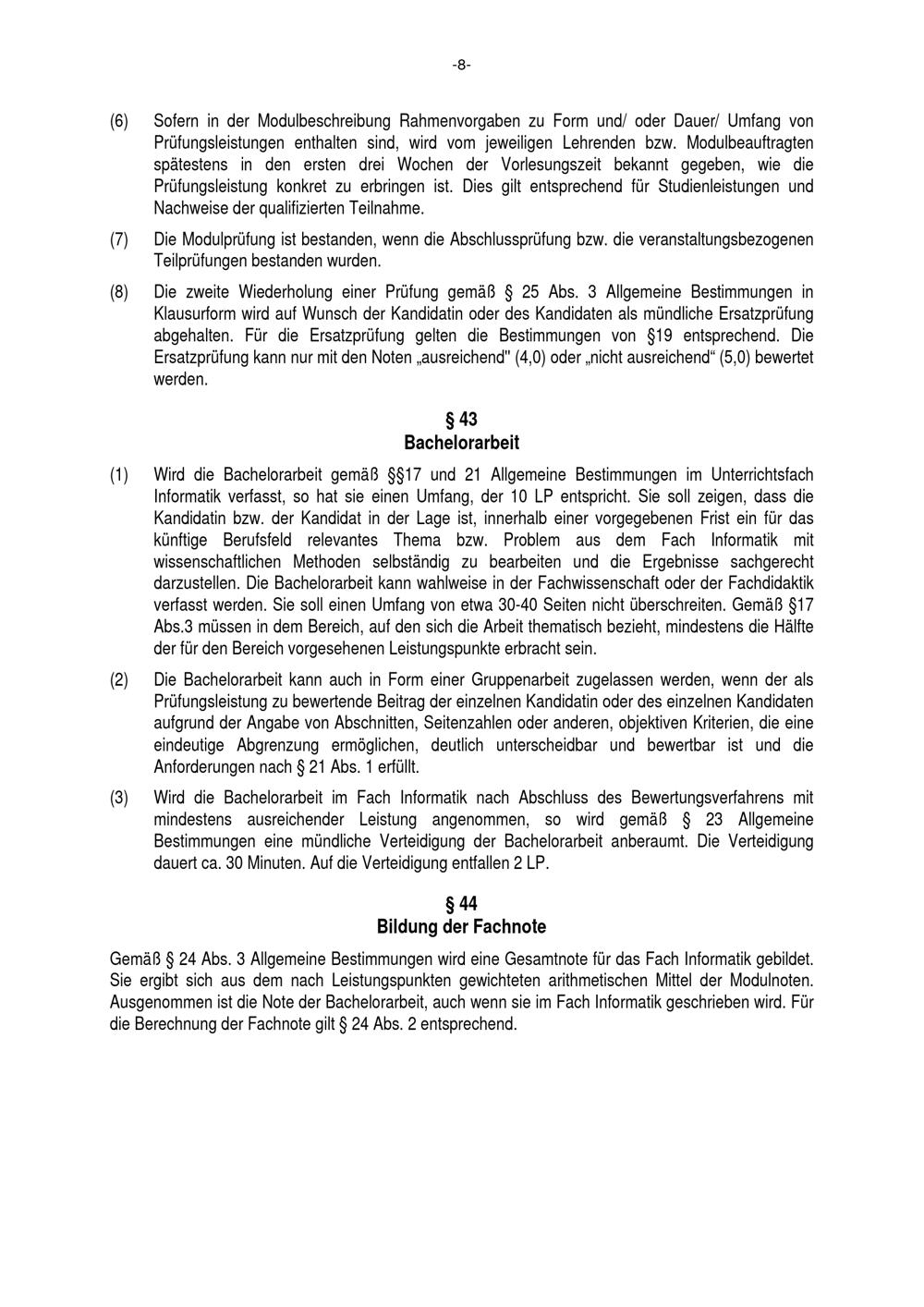 Besondere Bestimmungen der Prüfungsordnung für den Bachelorstudiengang Lehramt an Berufskollegs mit dem Unterrichtsfach Informatik an der Universität Paderborn : vom 29. Juli 2016