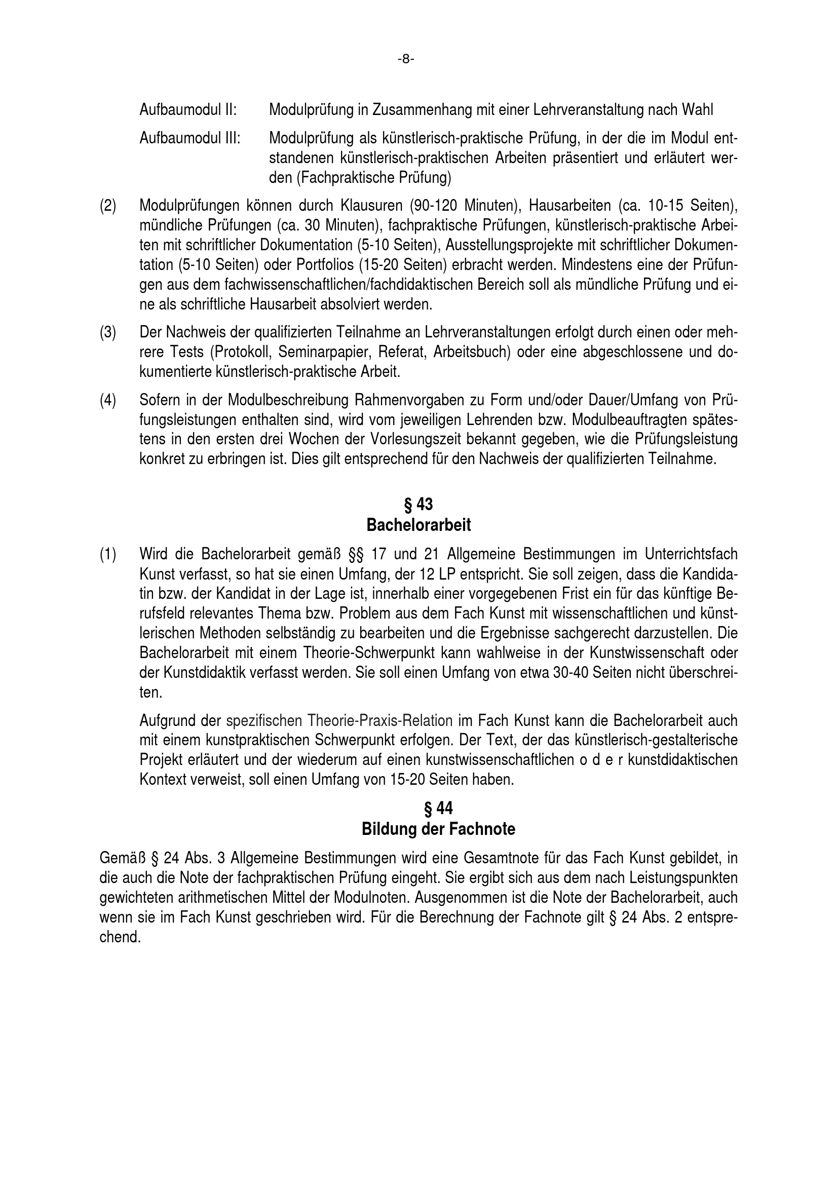 Besondere Bestimmungen der Prüfungsordnung für den Bachelorstudiengang Lehramt an Berufskollegs mit dem Unterrichtsfach Kunst an der Universität Paderborn : vom 29. Juli 2016