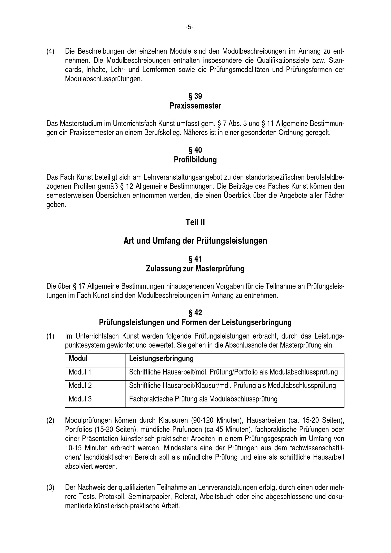 § 42 Prüfungsleistungen und Formen der Leistungserbringung
