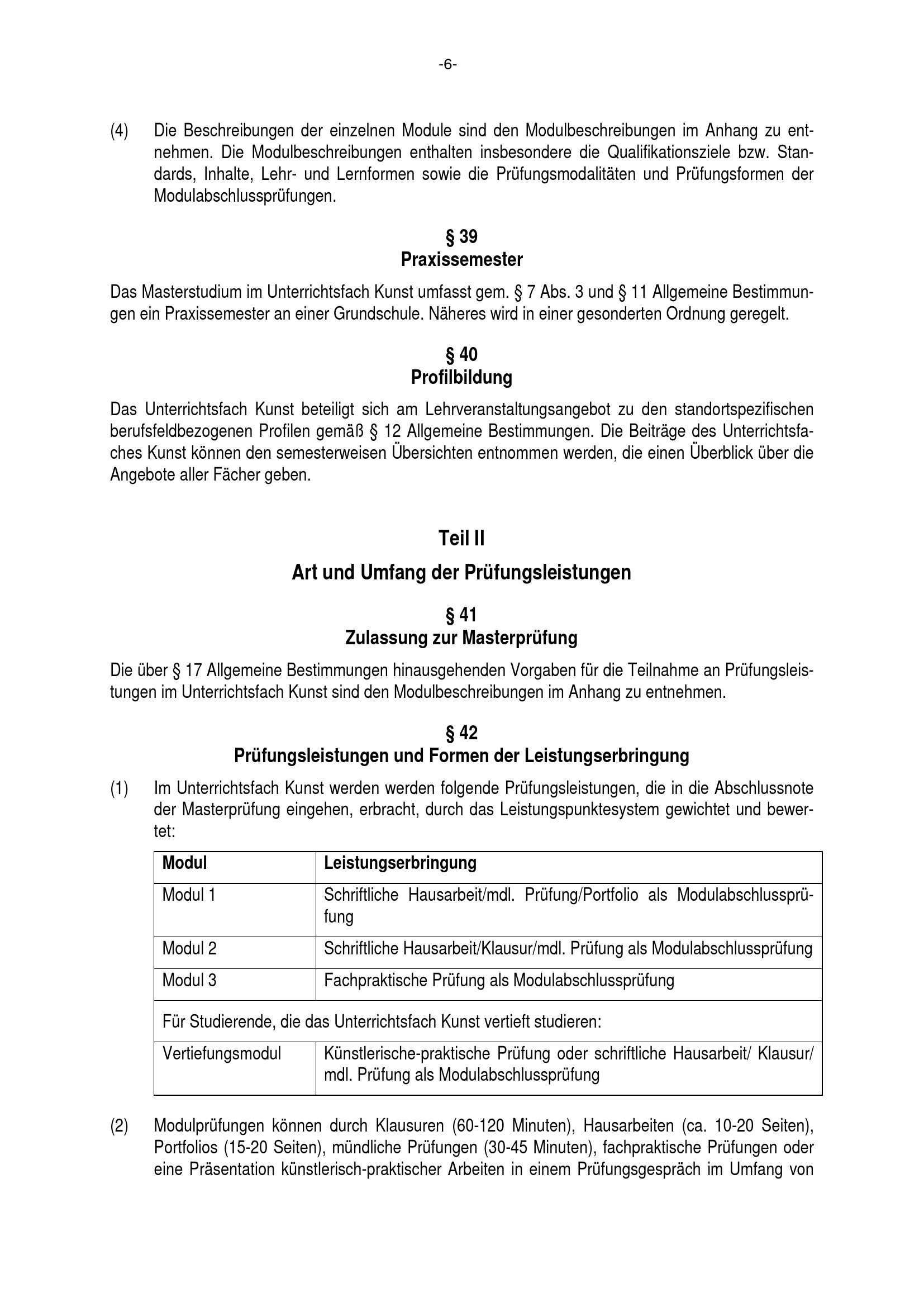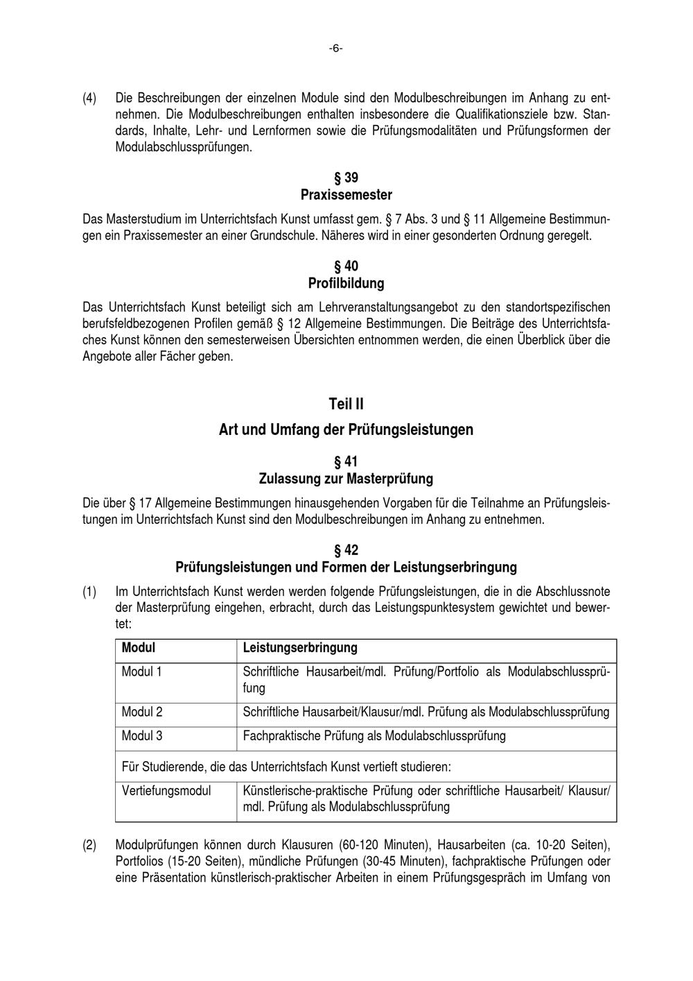 § 42 Prüfungsleistungen und Formen der Leistungserbringung