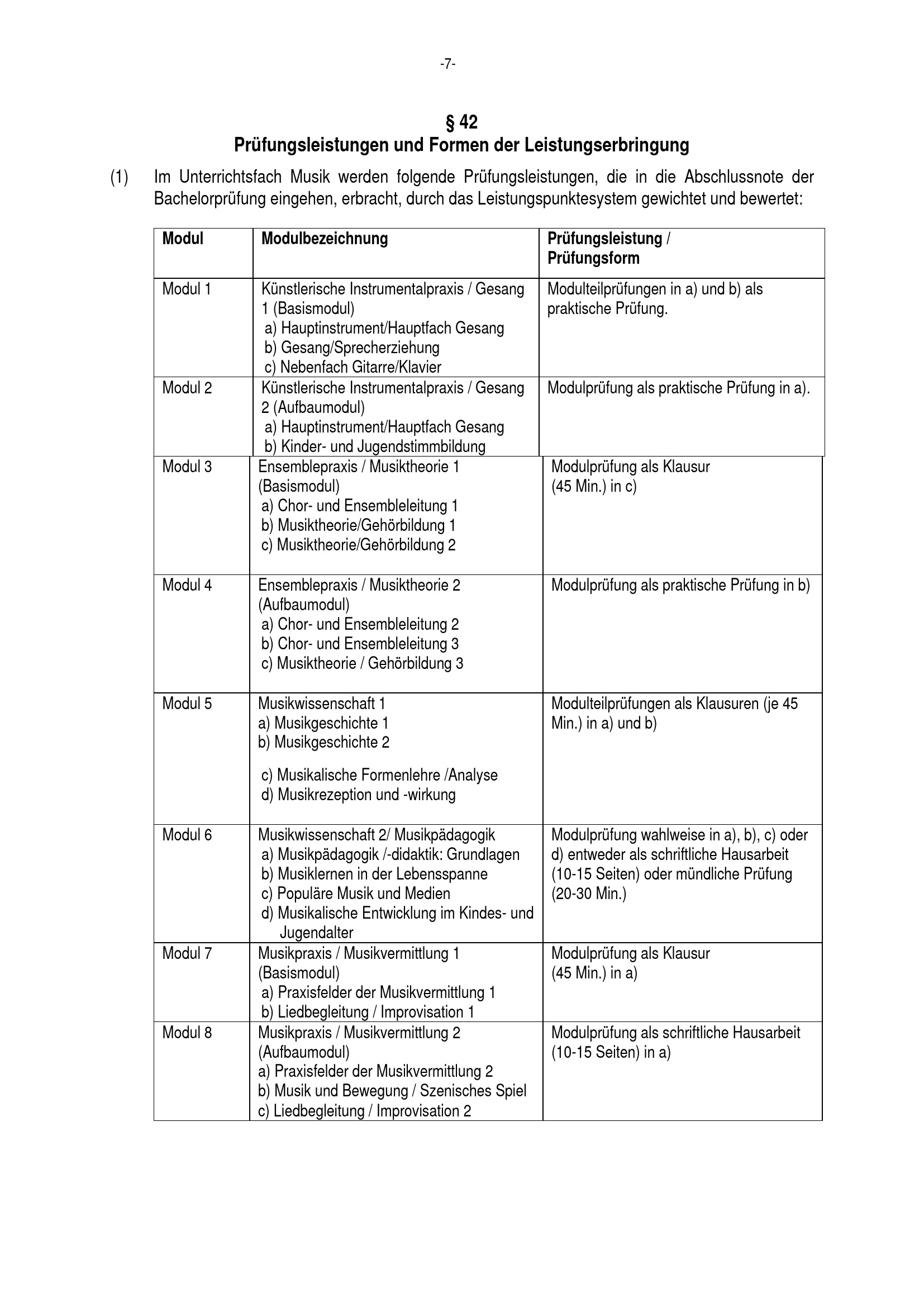 § 42 Prüfungsleistungen und Formen der Leistungserbringung