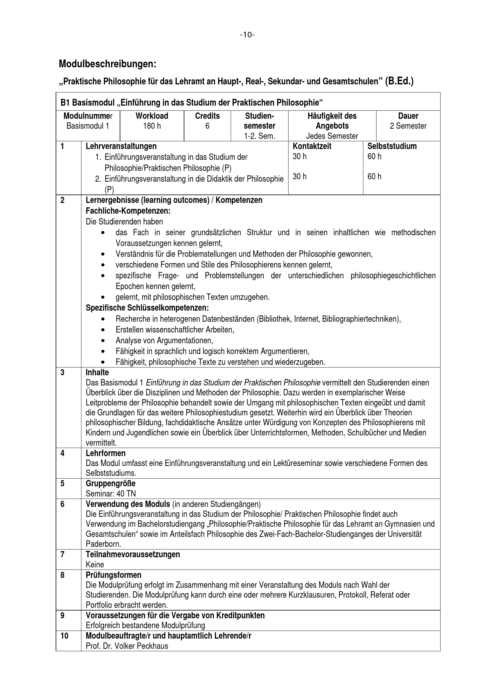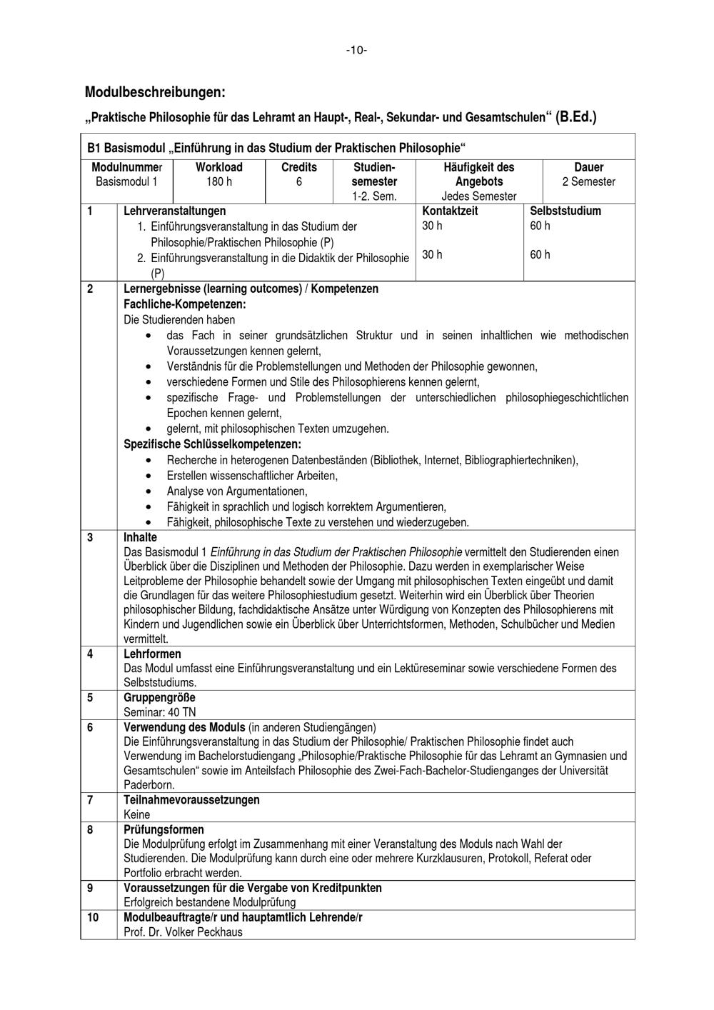 Besondere Bestimmungen der Prüfungsordnung für den Bachelorstudiengang Lehramt an Haupt-, Real-, Sekundar- und Gesamtschulen mit dem Unterrichtsfach Praktische Philosophie an der Universität Paderborn : vom 29. Juli 2016