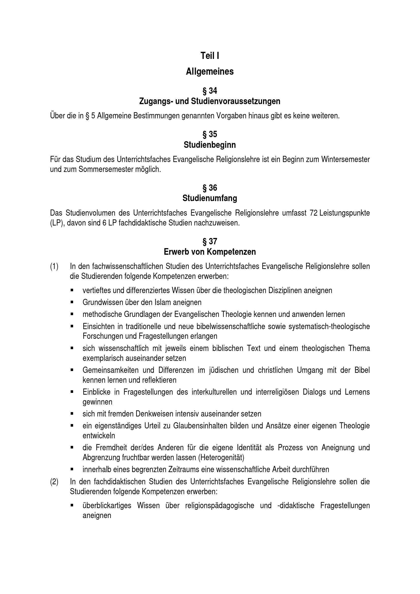 § 36 Studienumfang