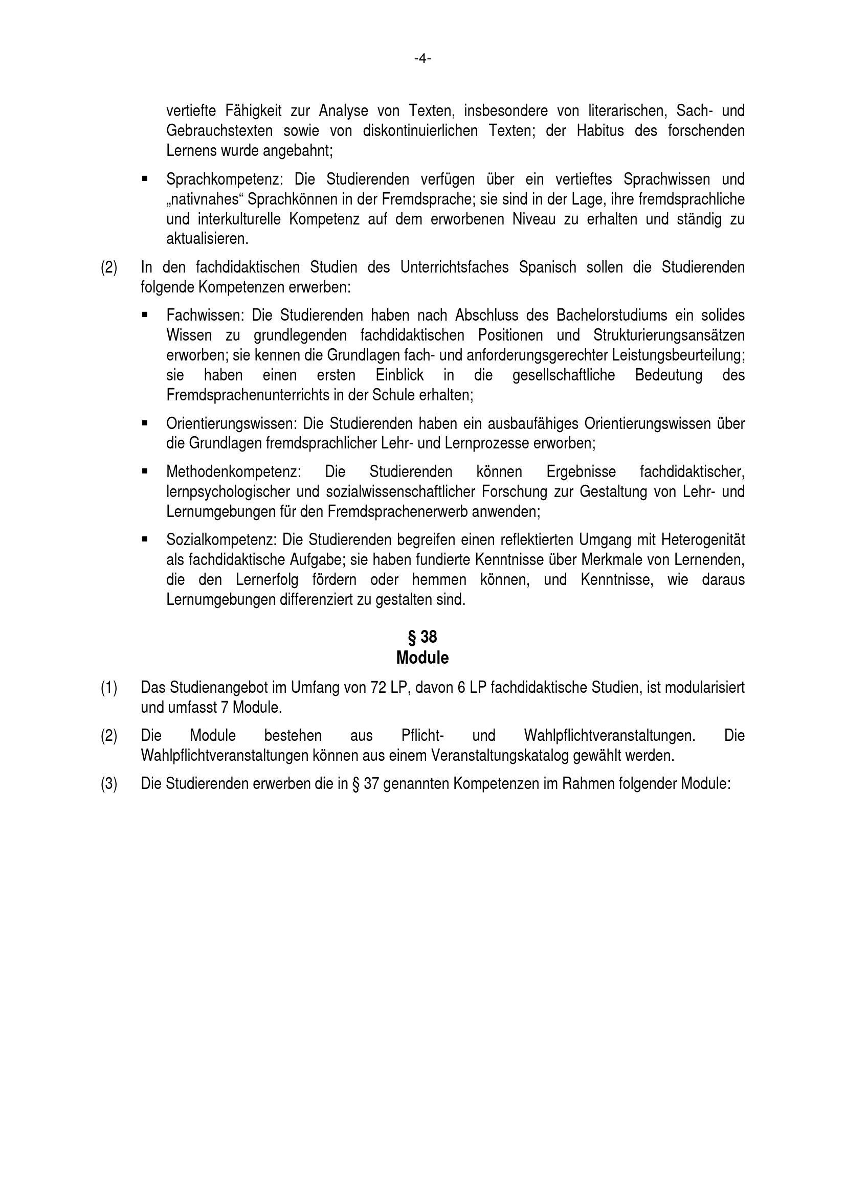 (2) In den fachdidaktischen Studien des Unterrichtsfaches Spanisch sollen die Studierenden[...]