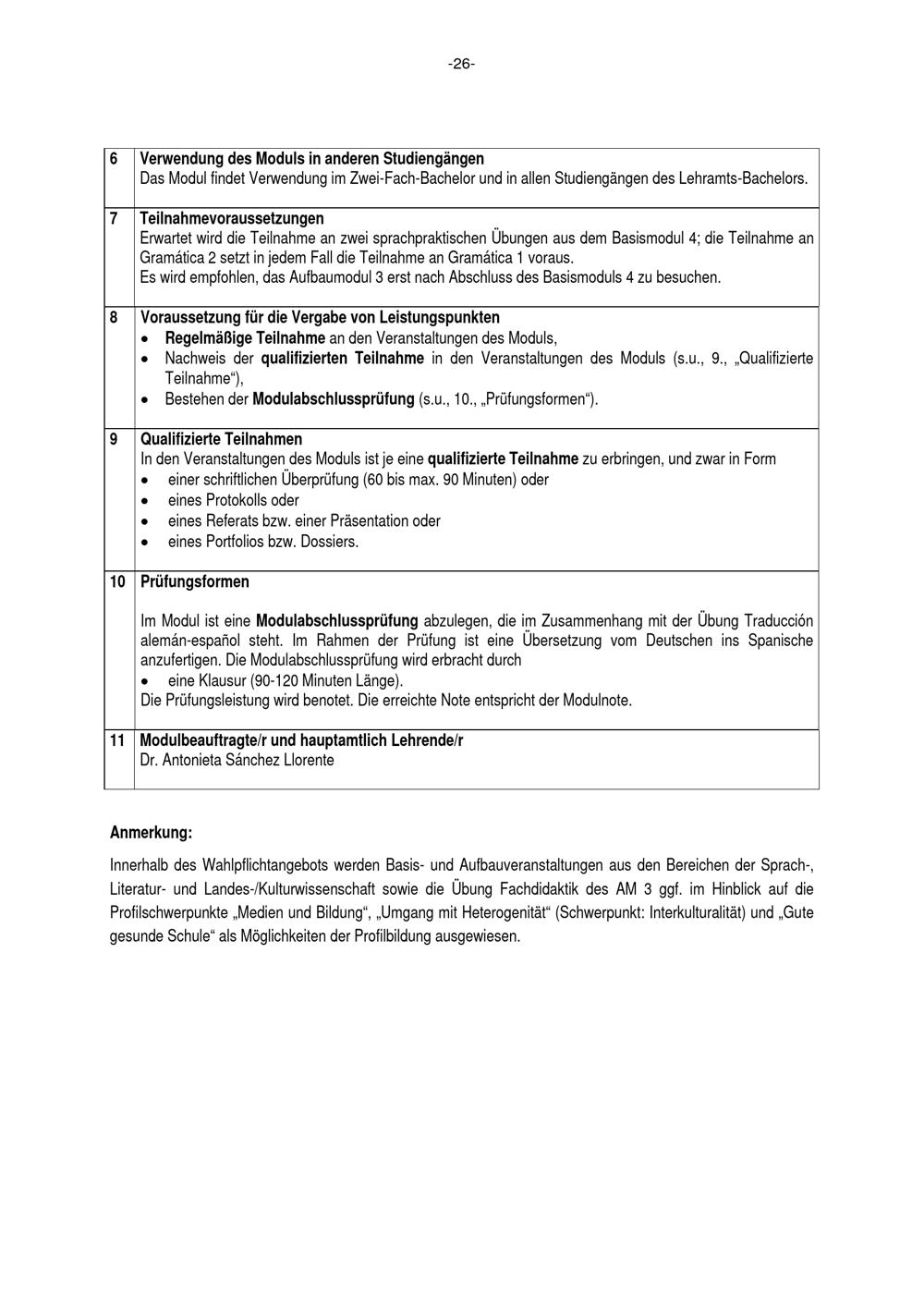 Besondere Bestimmungen der Prüfungsordnung für den Bachelorstudiengang Lehramt an Berufskollegs mit dem Unterrichtsfach Spanisch an der Universität Paderborn : vom 29. Juli 2016