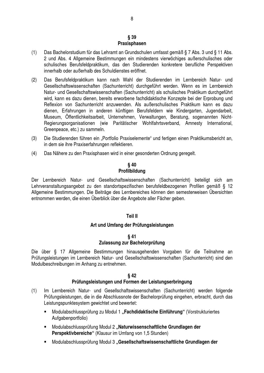 Besondere Bestimmungen der Prüfungsordnung für den Bachelorstudiengang Lehramt an Grundschulen mit dem Lernbereich Natur- und Gesellschaftswissenschaft (Sachunterricht) an der Universität Paderborn : vom 29. Juli 2016