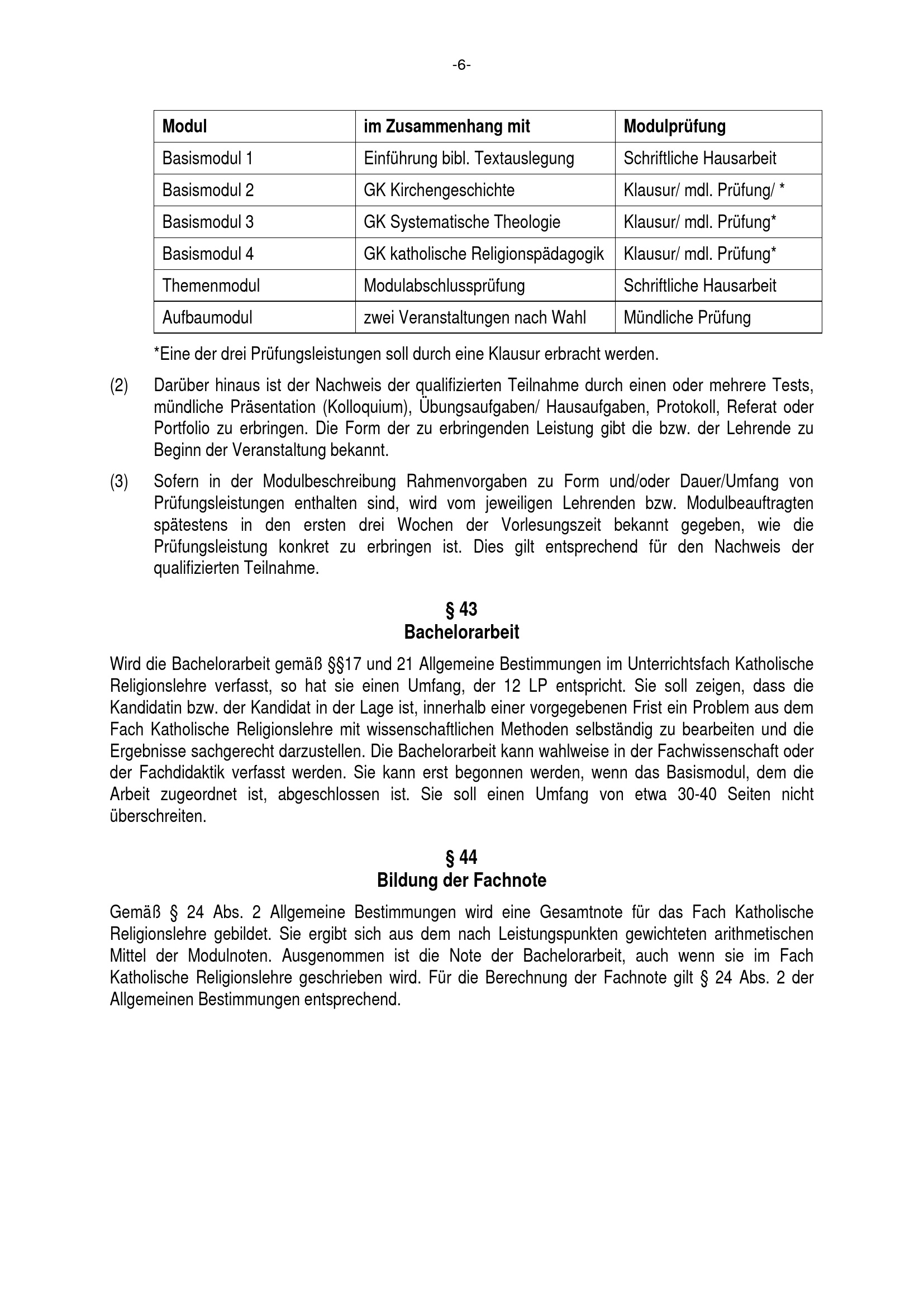 Besondere Bestimmungen der Prüfungsordnung für den Bachelorstudiengang Lehramt an Haupt-, Real-, Sekundar- und Gesamtschulen mit dem Unterrichtsfach Katholische Religionslehre an der Universität Paderborn : vom 29. Juli 2016
