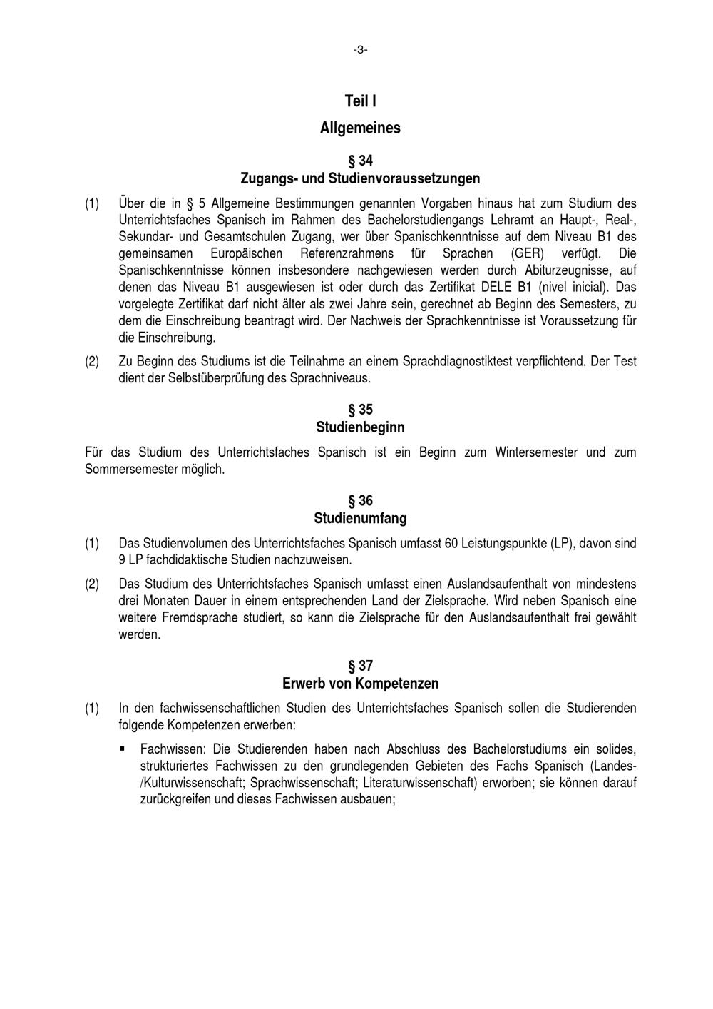Besondere Bestimmungen der Prüfungsordnung für den Bachelorstudiengang Lehramt an Haupt-, Real-, Sekundar- und Gesamtschulen mit dem Unterrichtsfach Spanisch an der Universität Paderborn : vom 29. Juli 2016