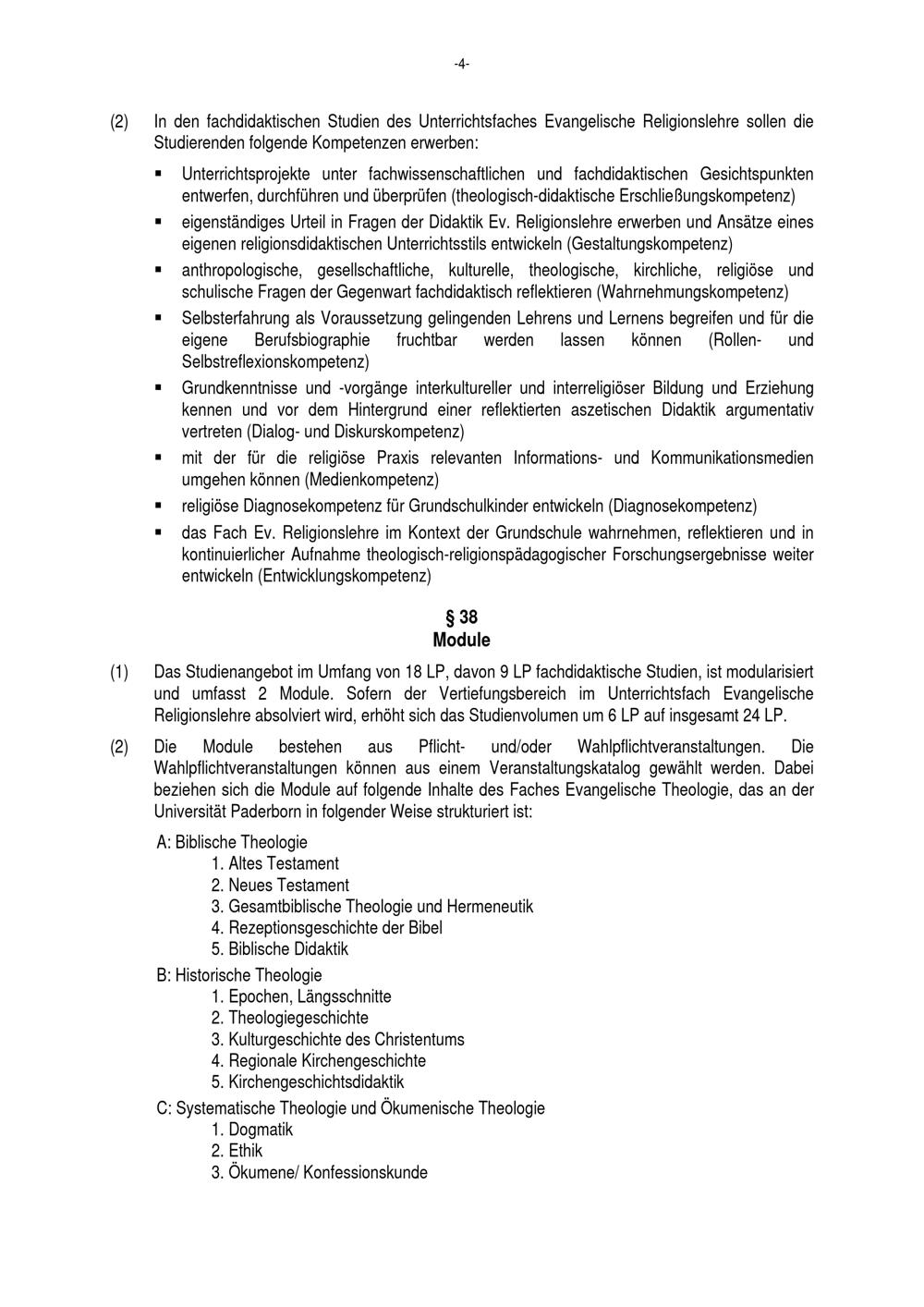 Besondere Bestimmungen der Prüfungsordnung für den Masterstudiengang Lehramt an Grundschulen mit dem Unterrichtsfach Evangelische Religionslehre an der Universität Paderborn : vom 29. Juli 2016