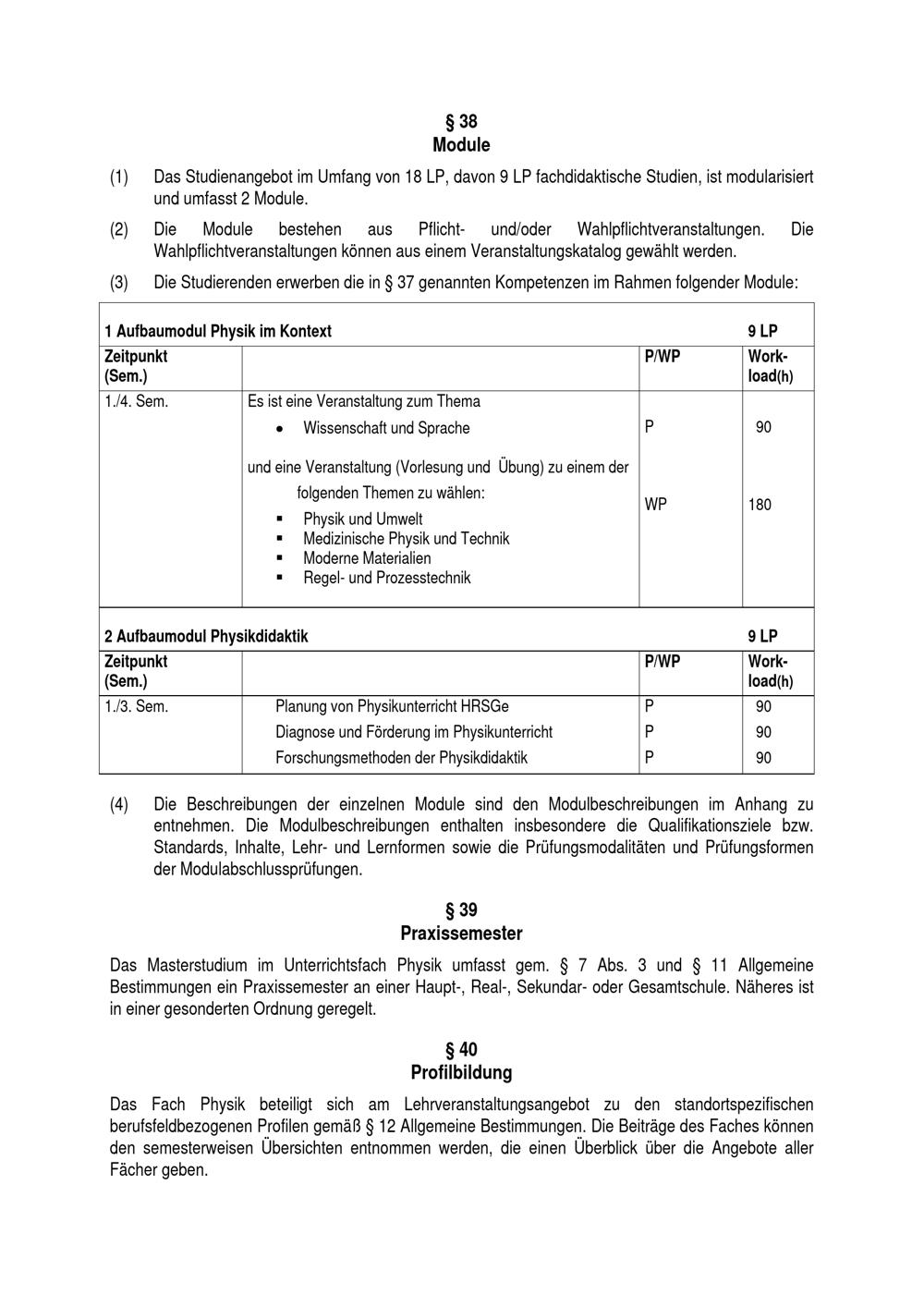 § 36 Studienumfang