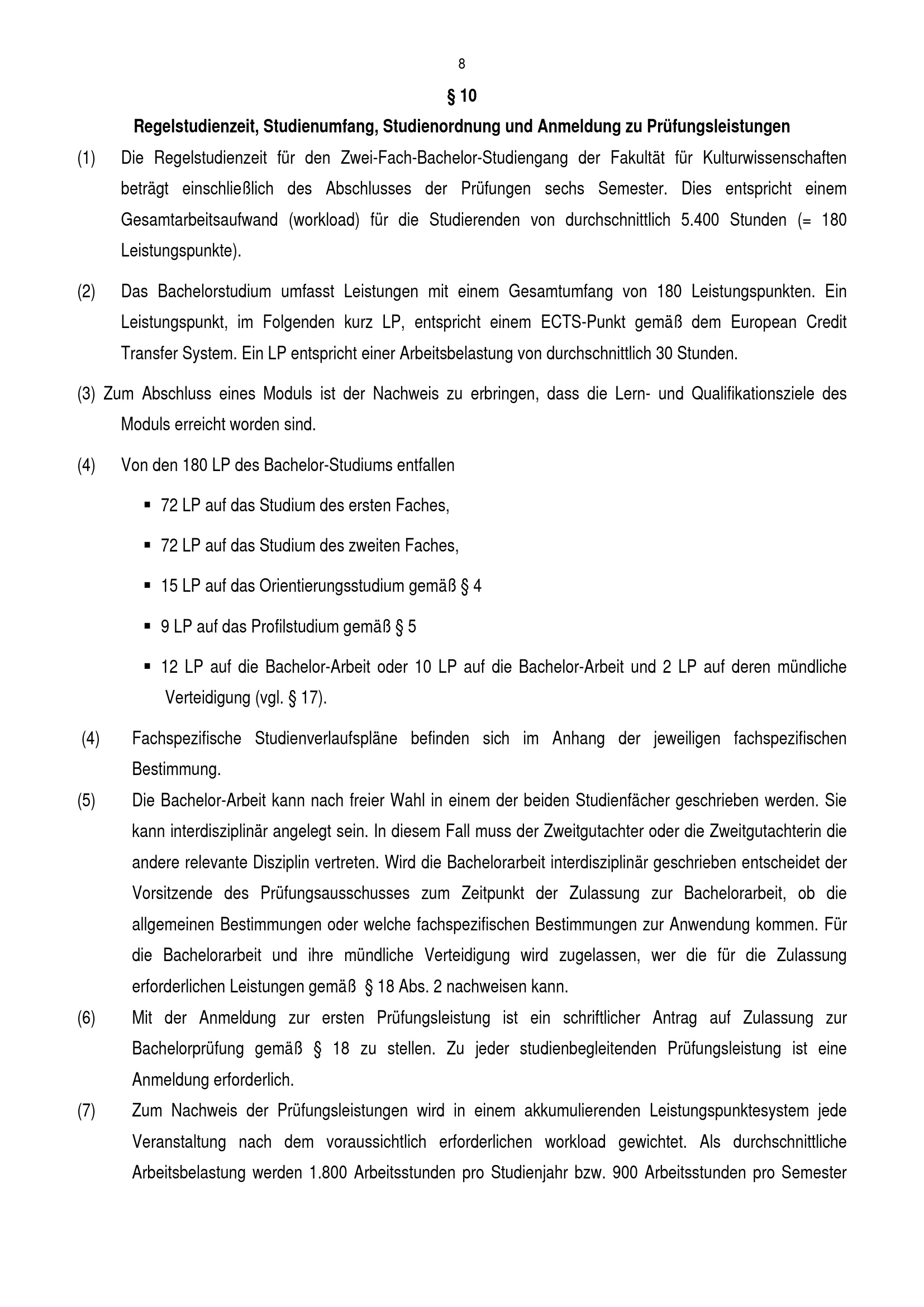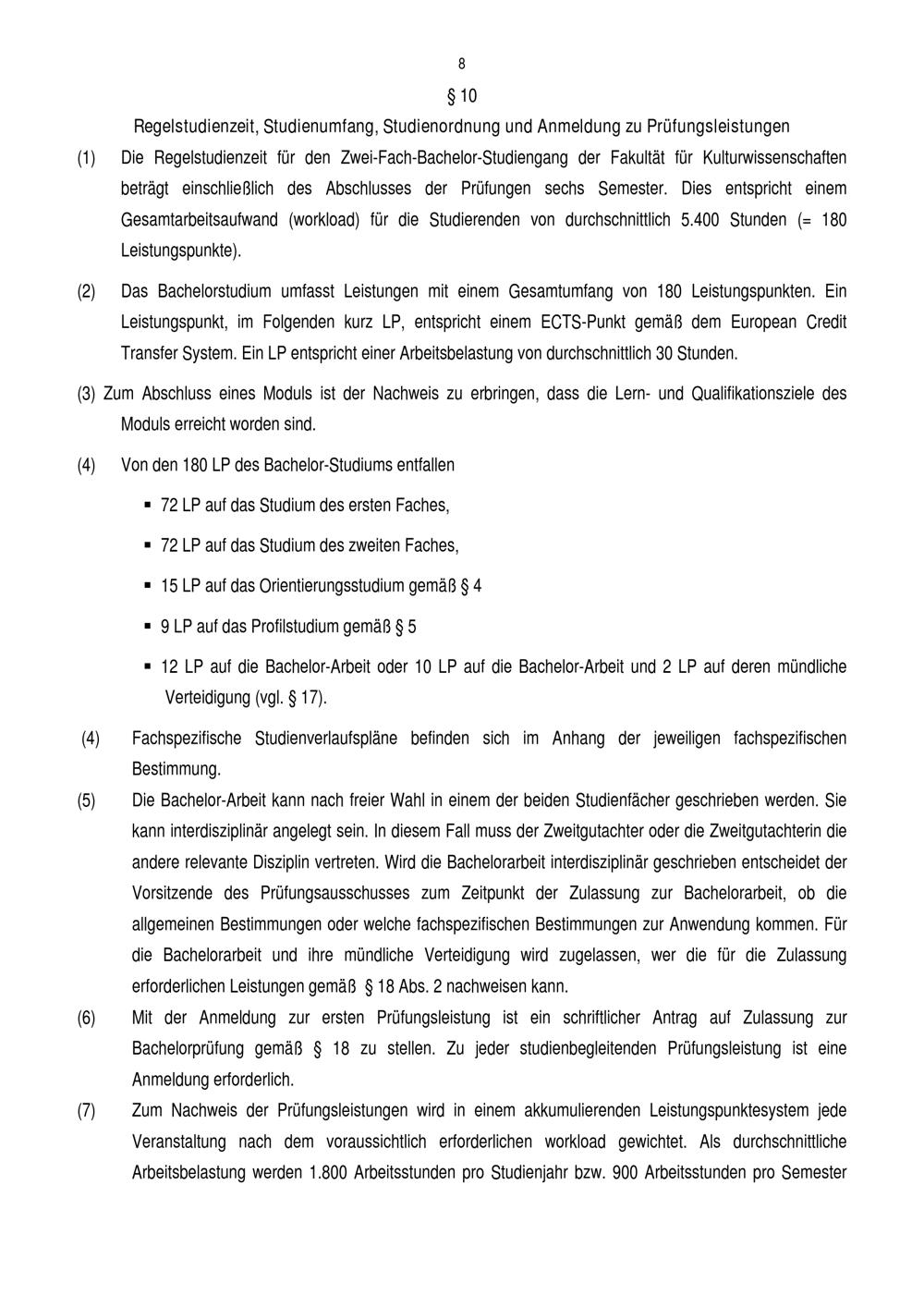 § 10 Regelstudienzeit, Studienumfang, Studienordnung und Anmeldung zu Prüfungsle[...]