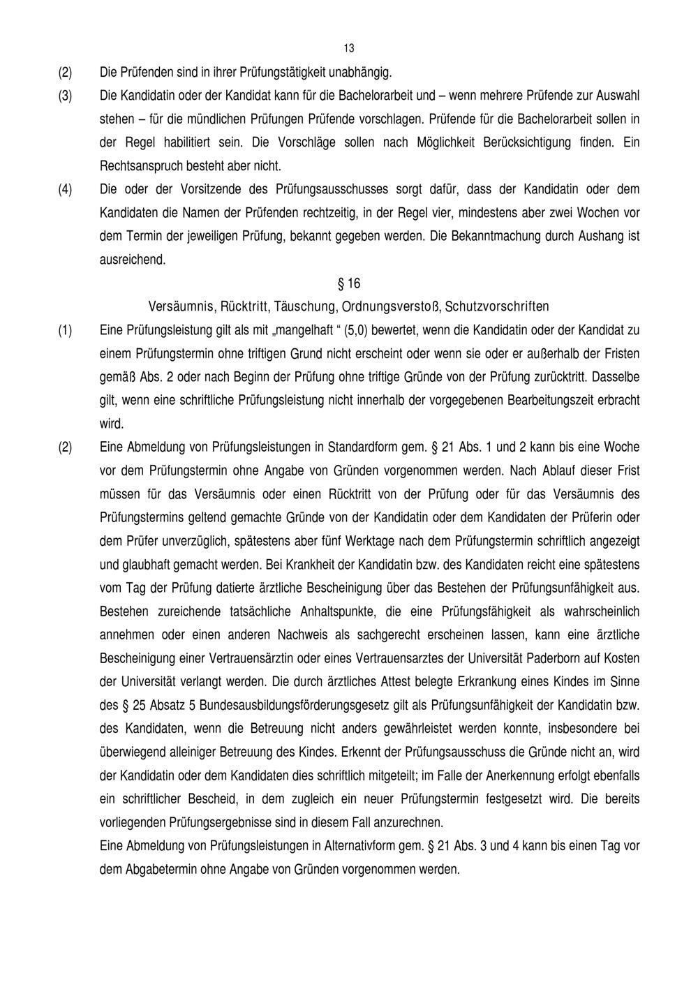 Allgemeine Bestimmungen der Prüfungsordnung für den Zwei-Fach-Bachelorstudiengang der Fakultät für Kulturwissenschaften an der Universität Paderborn : vom 12. August 2016