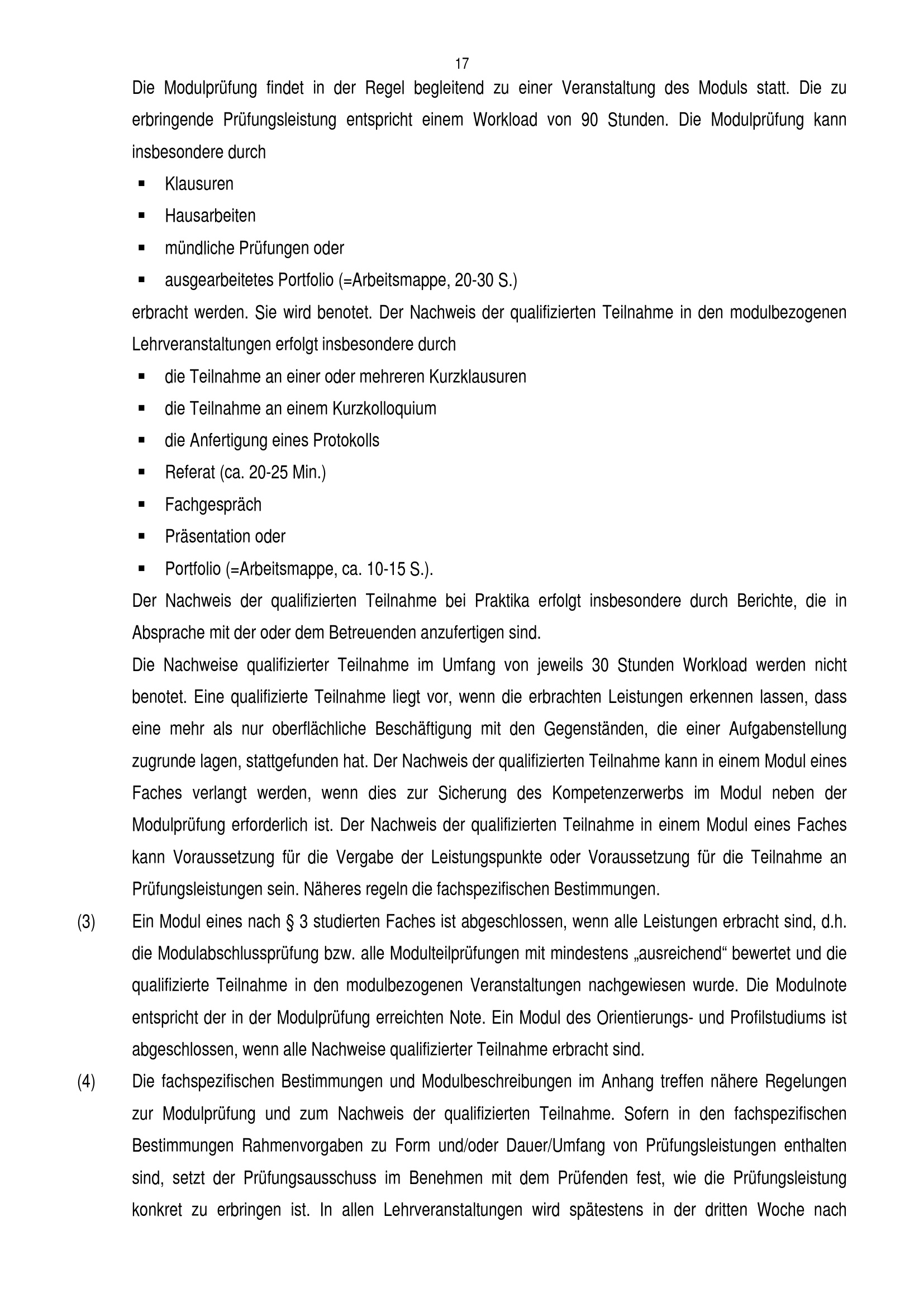 § 20 Prüfungsleistungen und qualifizierte Teilnahme