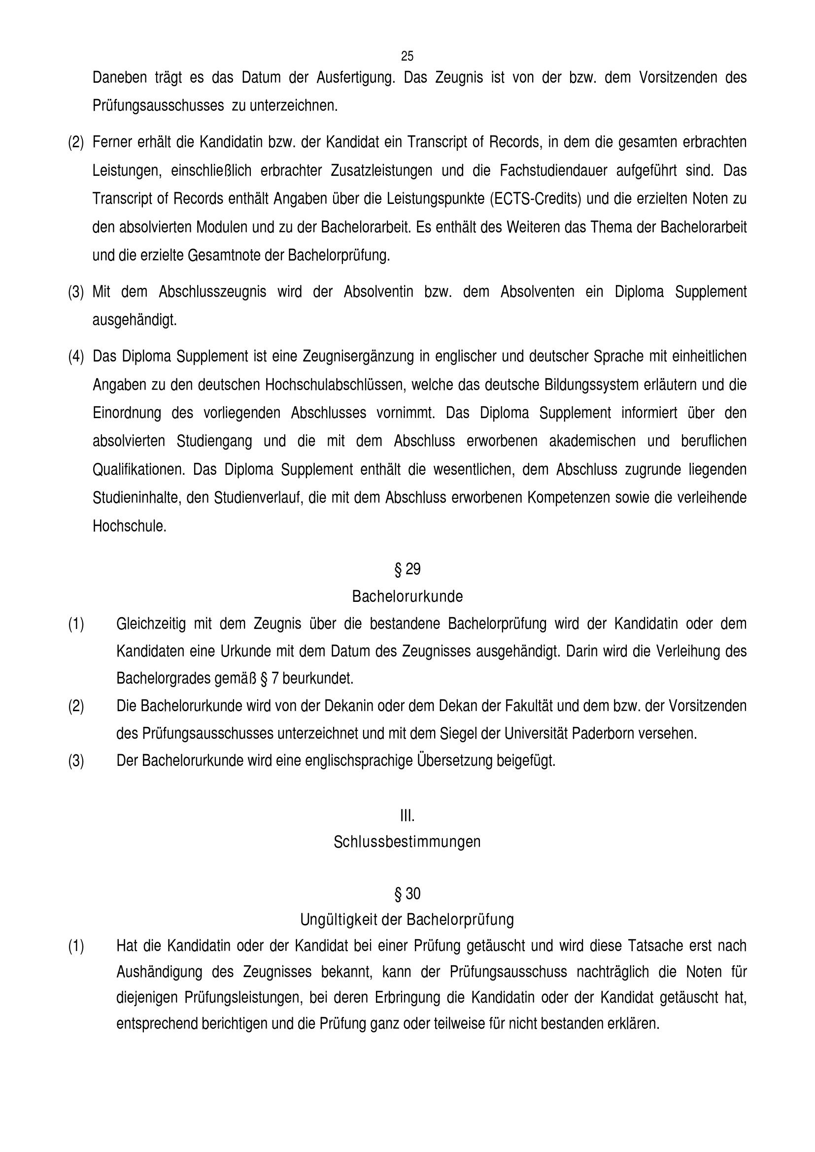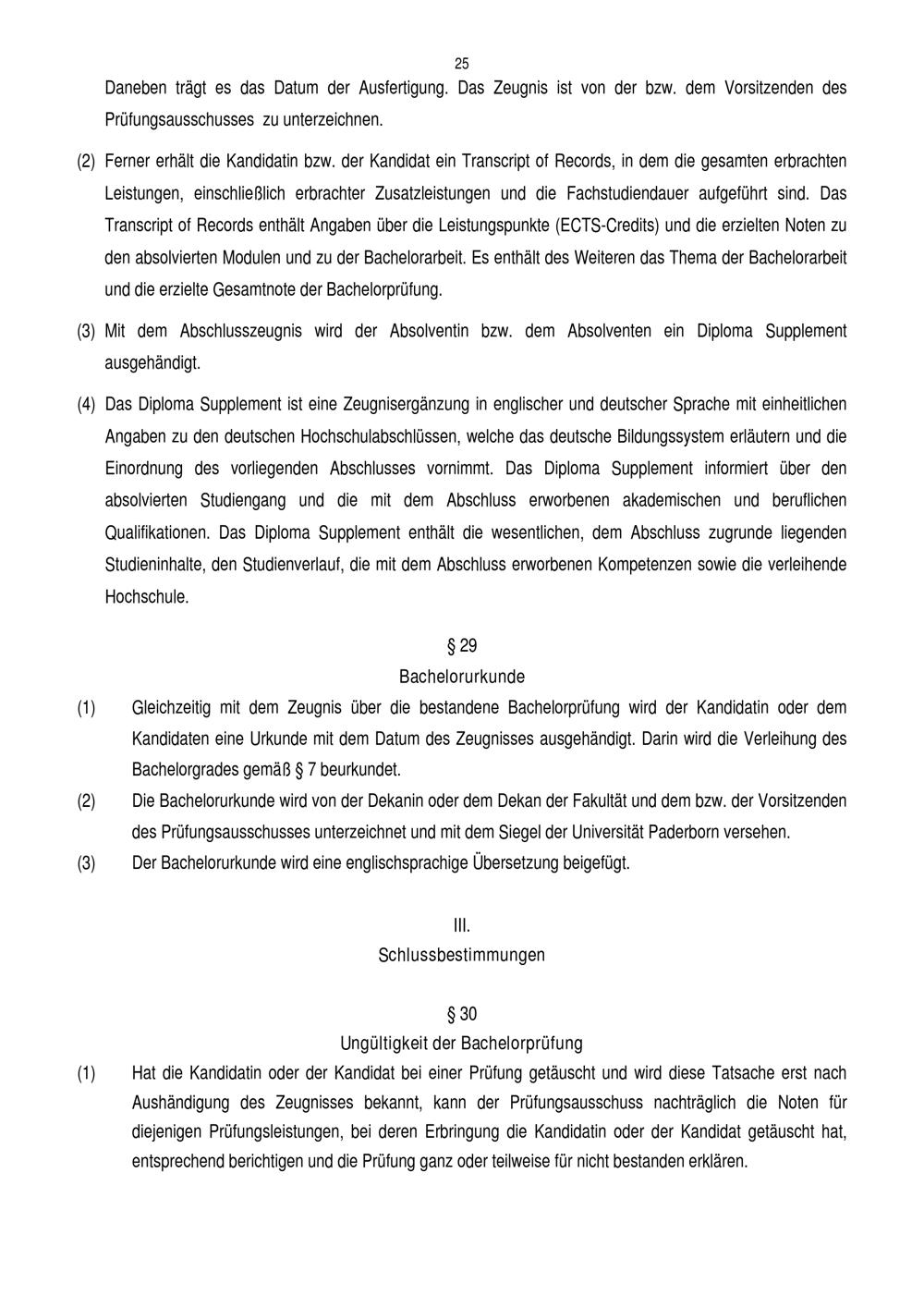 Allgemeine Bestimmungen der Prüfungsordnung für den Zwei-Fach-Bachelorstudiengang der Fakultät für Kulturwissenschaften an der Universität Paderborn : vom 12. August 2016