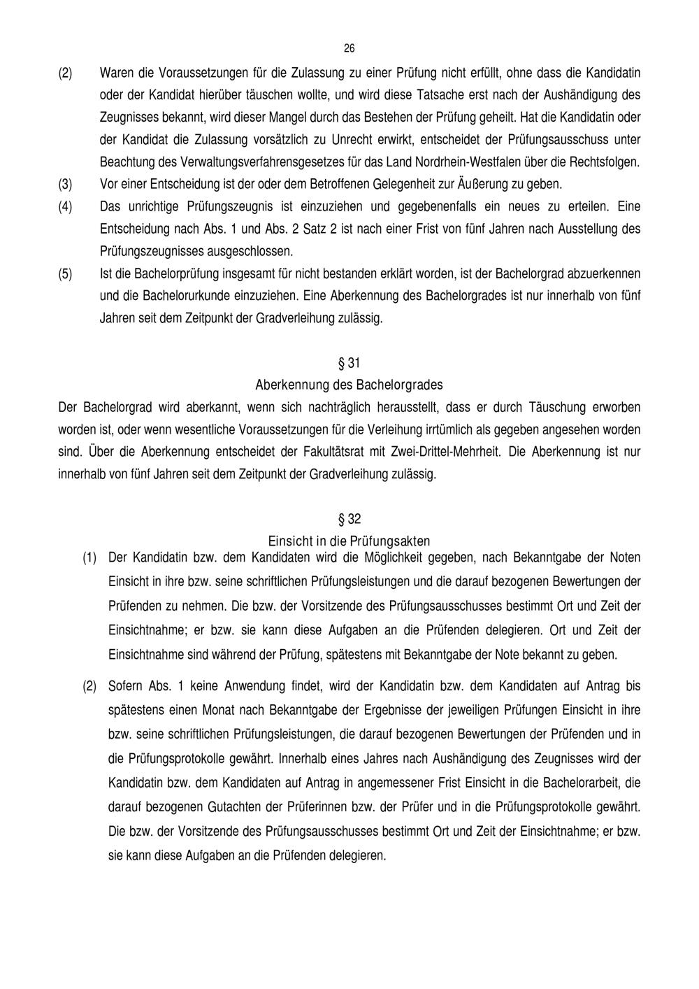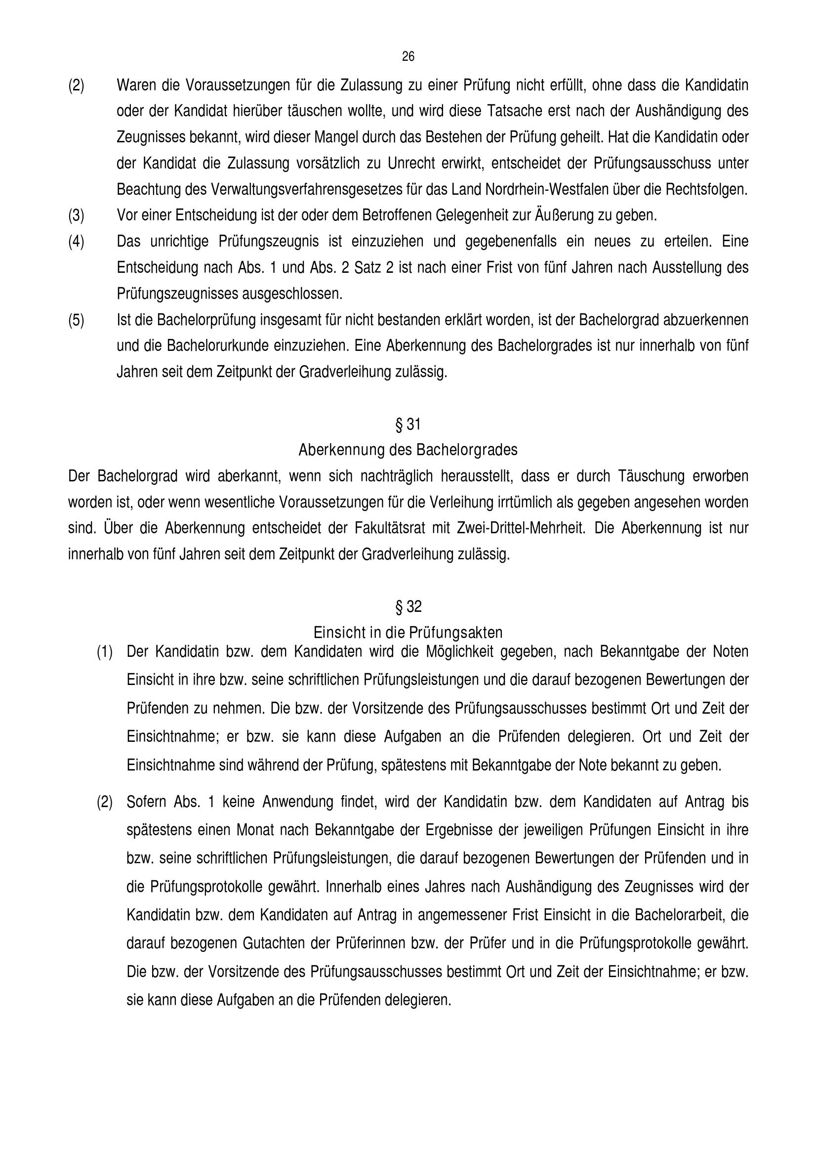 § 31 Aberkennung des Bachelorgrades