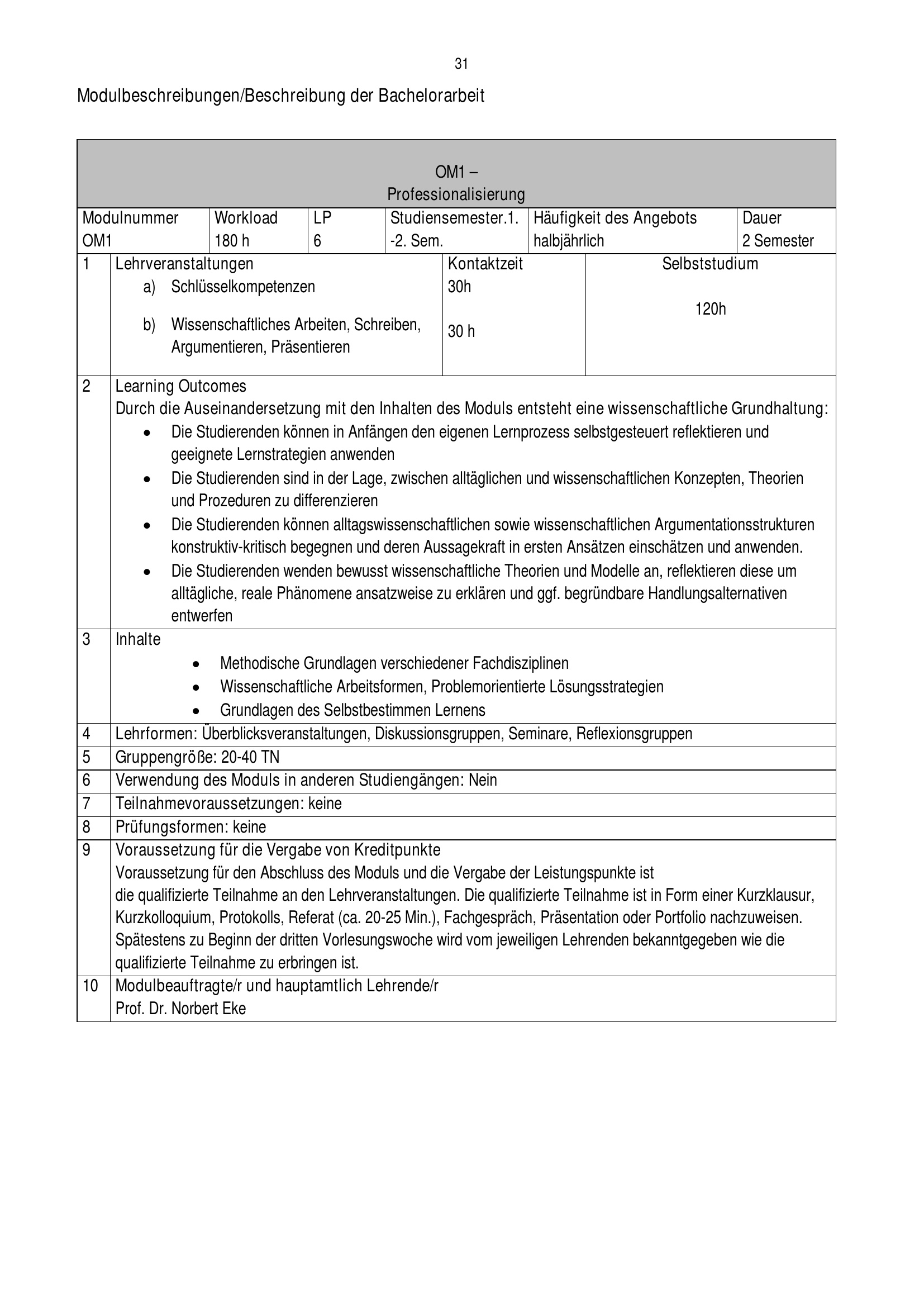 Modulbeschreibungen/Beschreibung der Bachelorarbeit