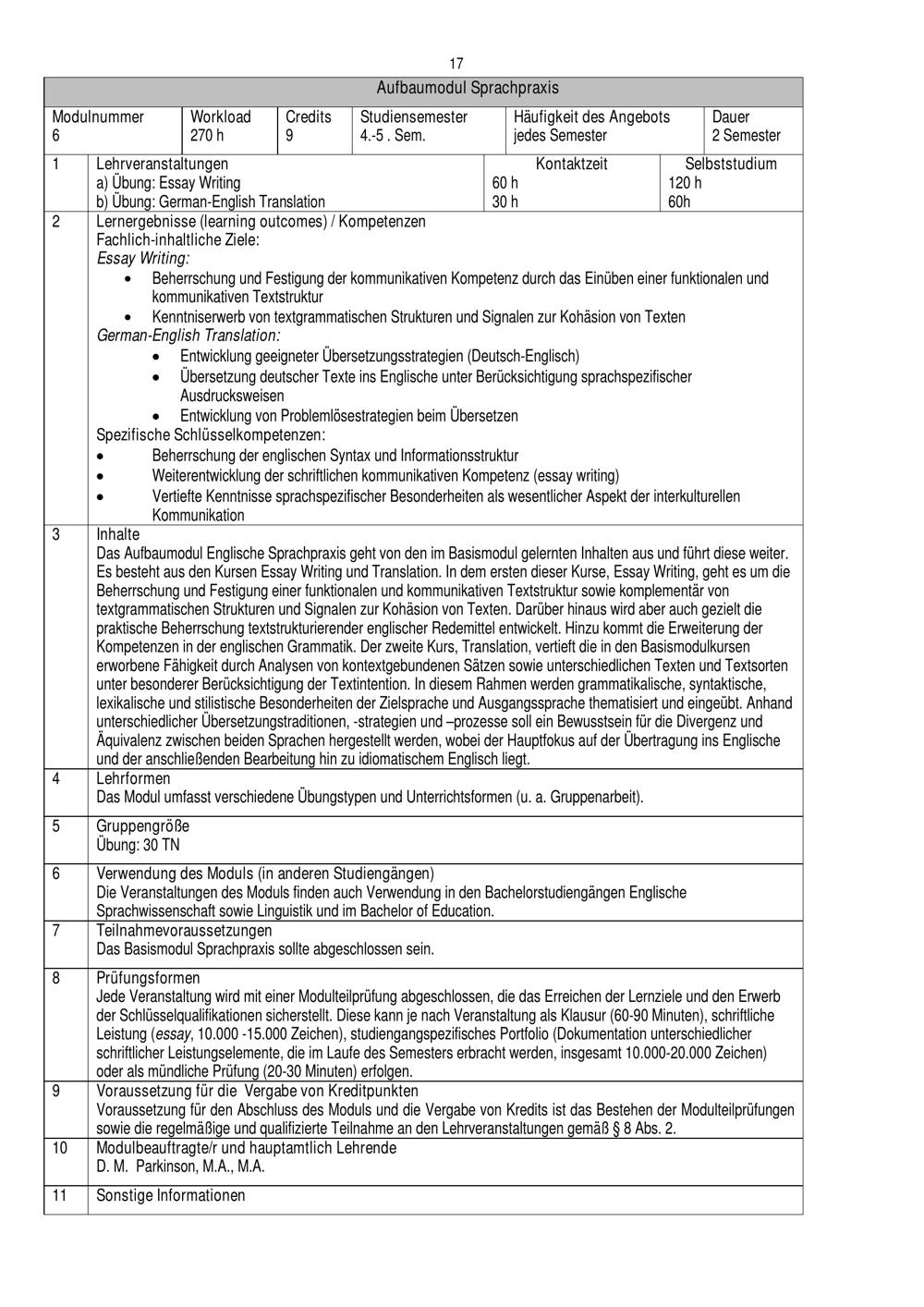 Fachspezifische Bestimmungen für das Fach Englischsprachige Literatur und Kultur der Prüfungsordnung für den Zwei-Fach-Bachelorstudiengang der Fakultät für Kulturwissenschaften an der Universität Paderborn : vom 12. August 2016