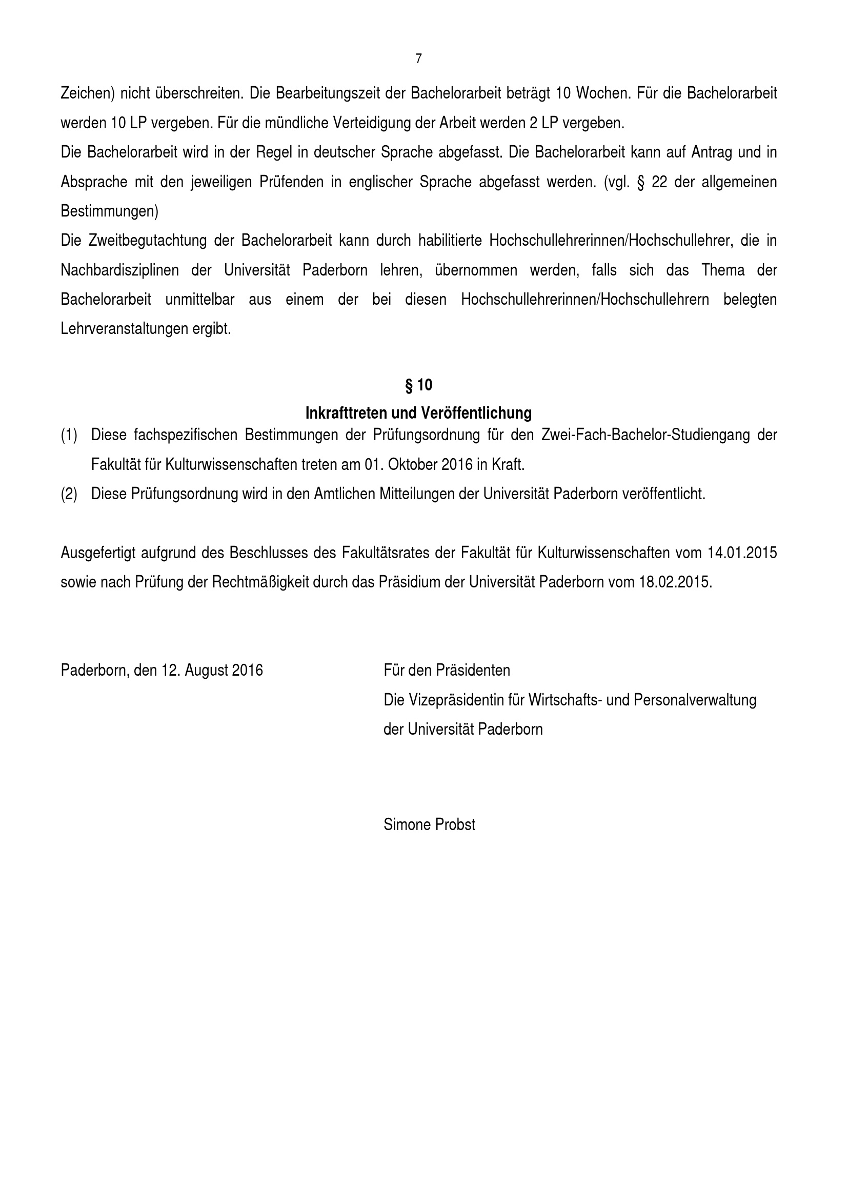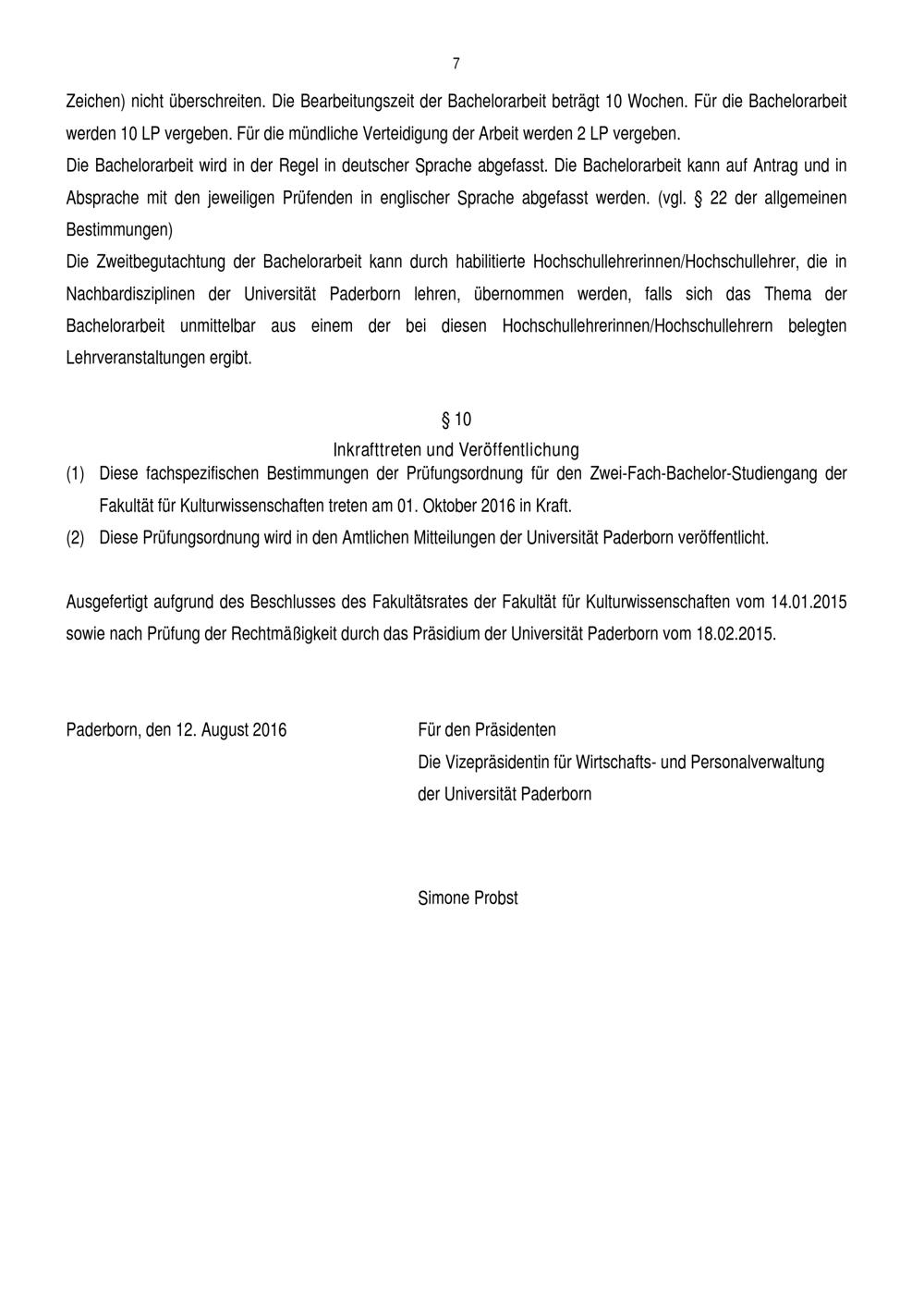 Fachspezifische Bestimmungen für das Fach Komparatistik / Vergleichende Literatur- und Kulturwissenschaft der Prüfungsordnung für den Zwei-Fach-Bachelorstudiengang der Fakultät für Kulturwissenschaften an der Universität Paderborn : vom 12. August 2016
