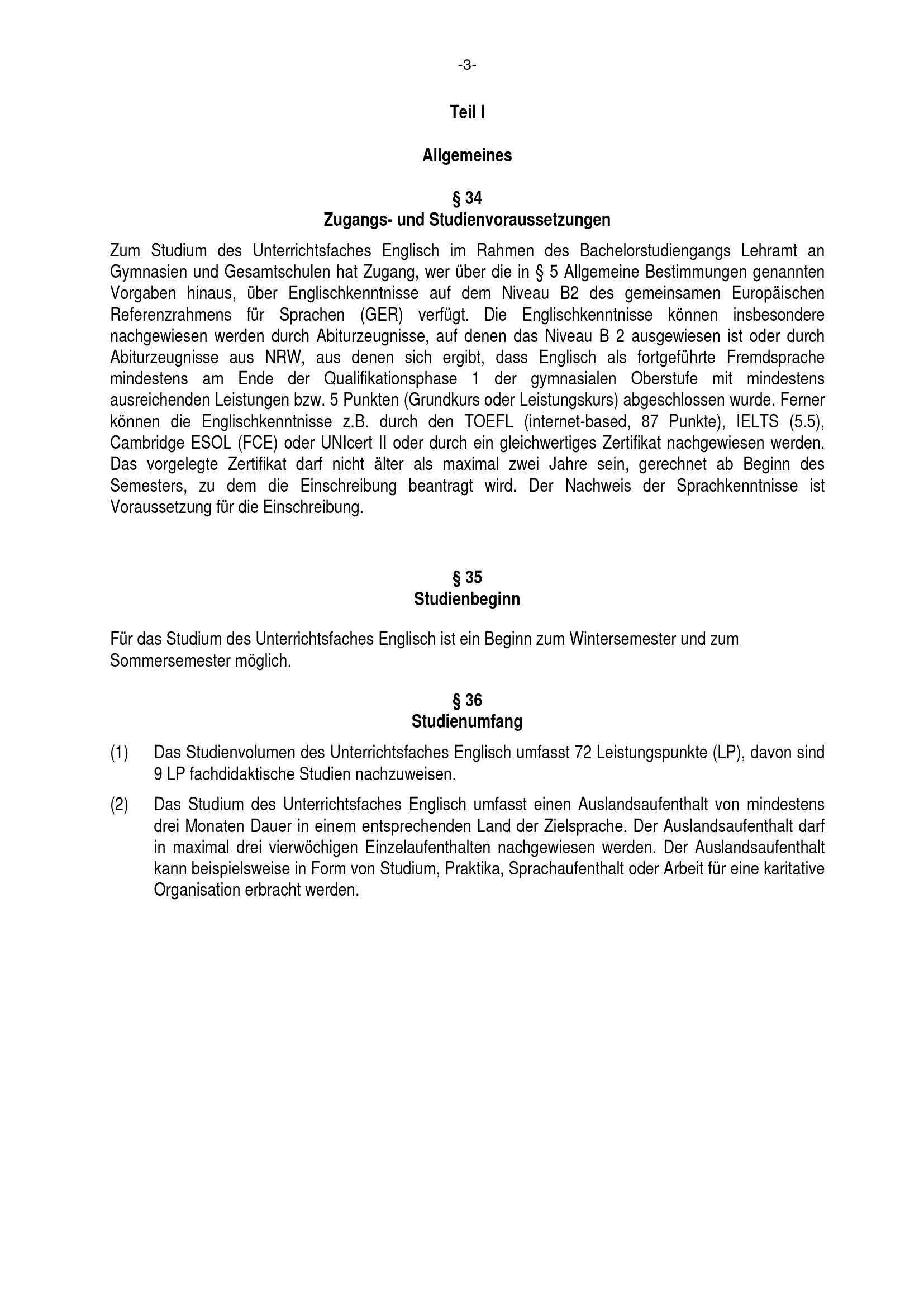 § 36 Studienumfang